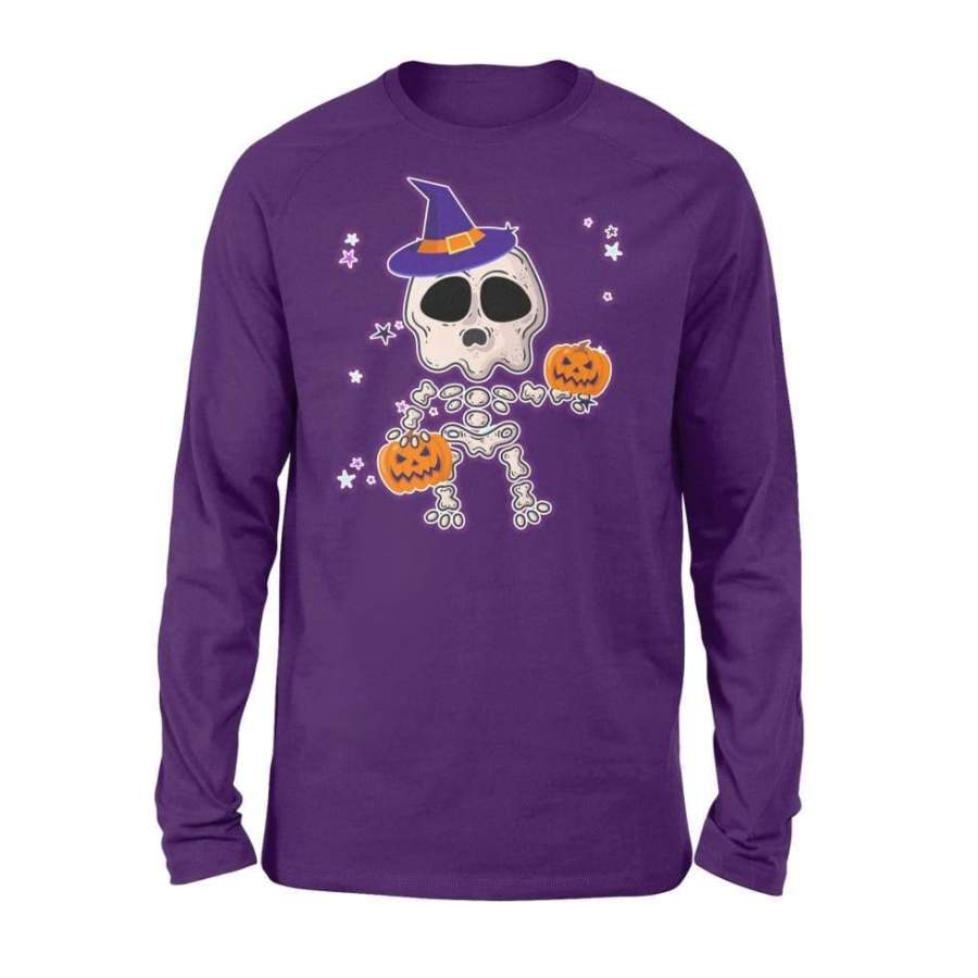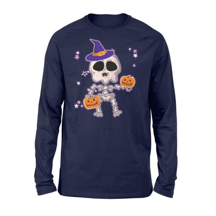 Skeleton Bring Pumpkin Halloween Costume Shirt Gift – Standard Long Sleeve