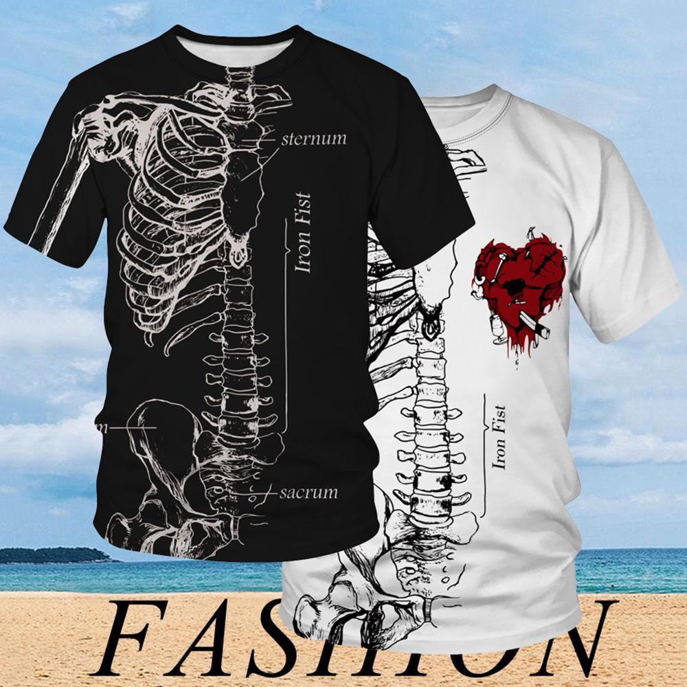 Skeleton Broken Heart Iron Fist Sternum Sacrum Black White Halloween 3D All-Over Print Unisex T-Shirt