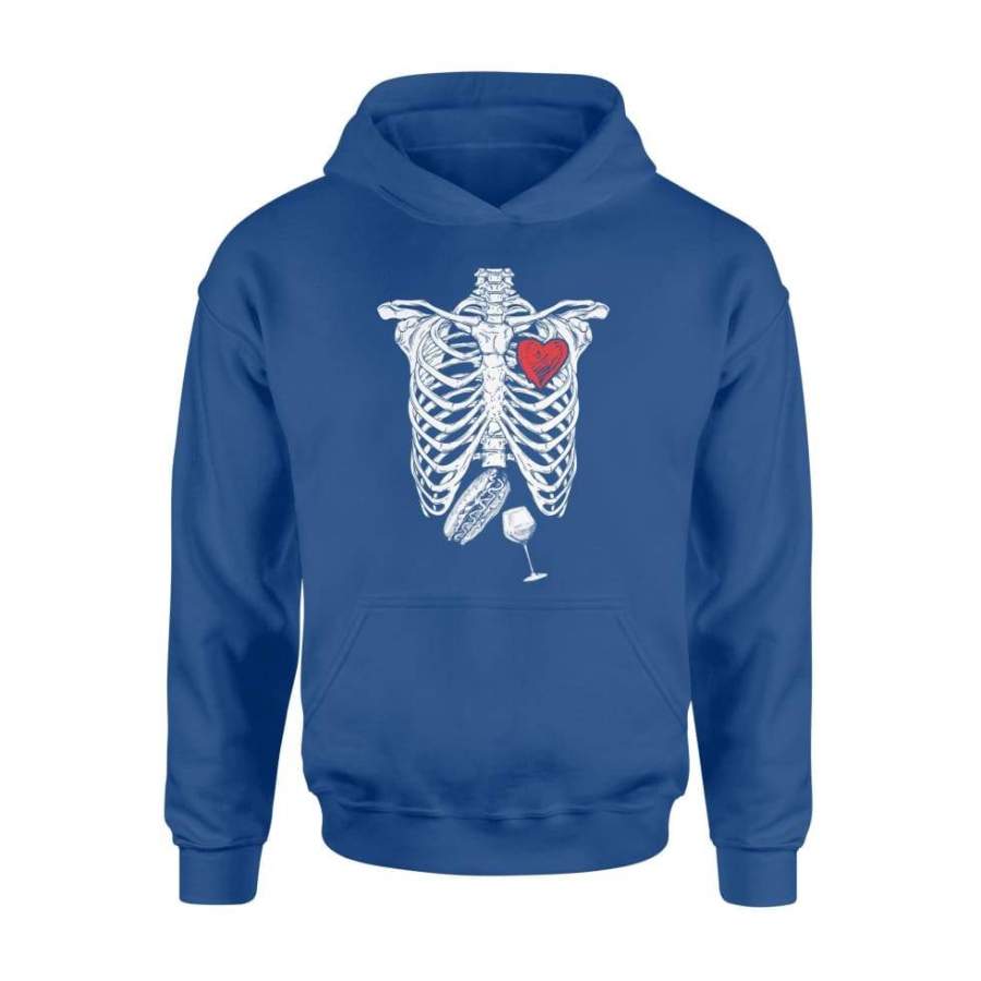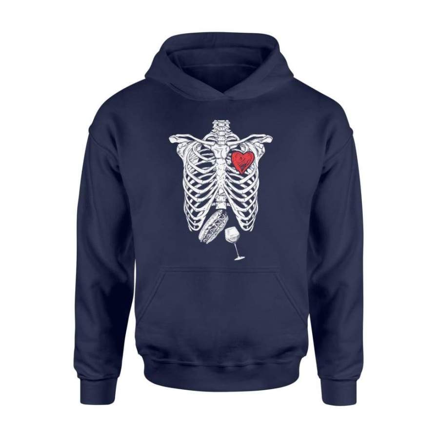 Skeleton Hot Dogs And Wine Lovers Halloween Shirt – Standard Hoodie
