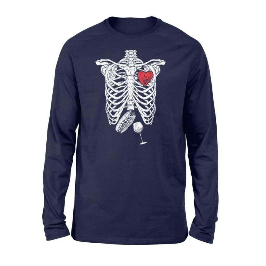 Skeleton Hot Dogs And Wine Lovers Halloween Shirt – Standard Long Sleeve