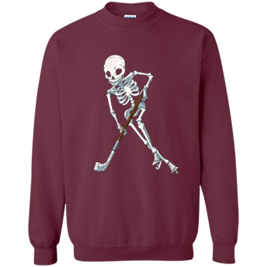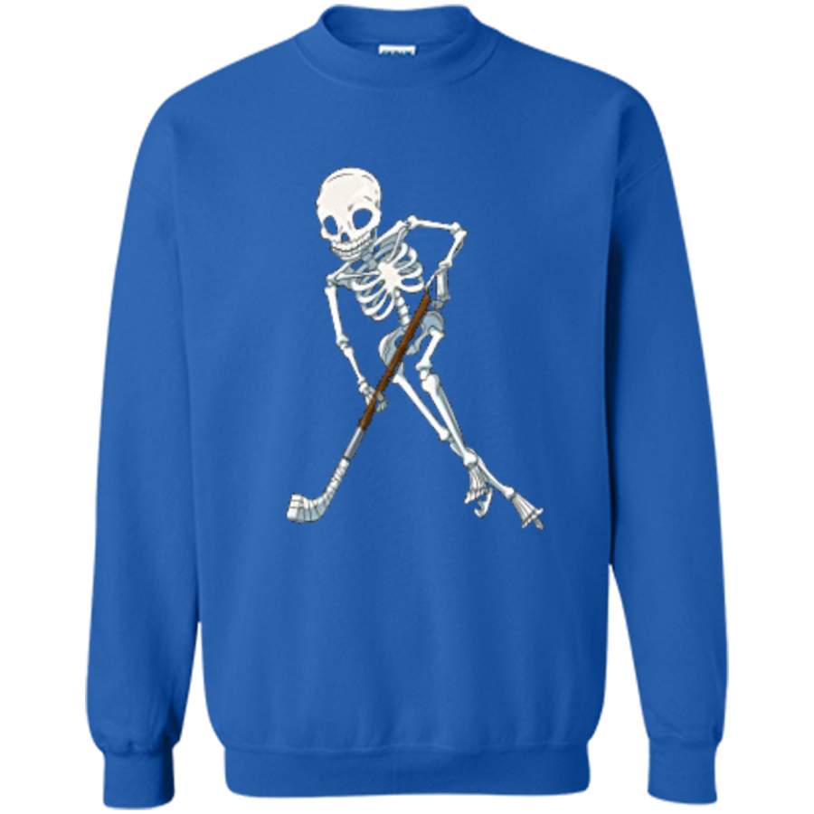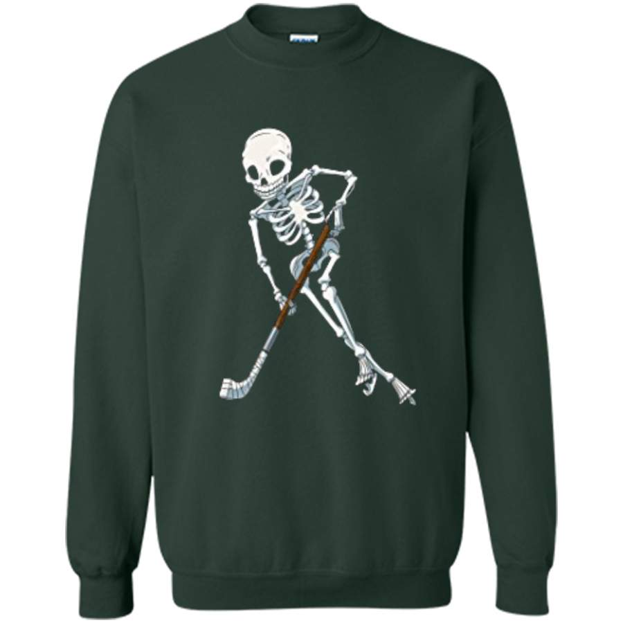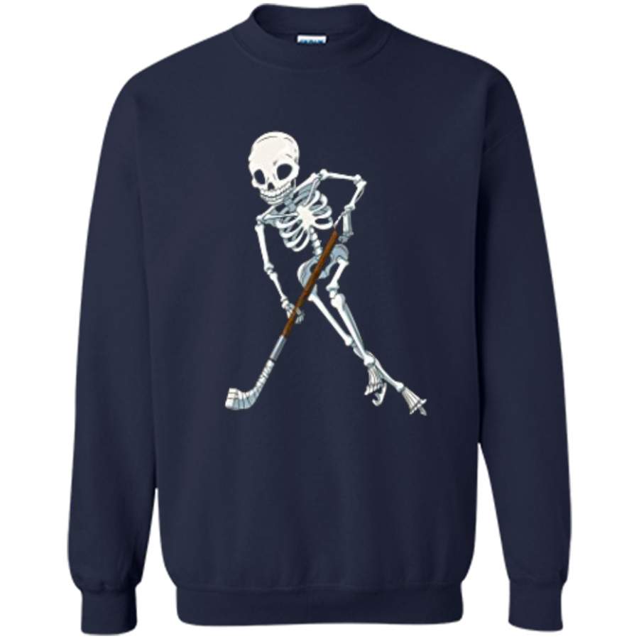 Skeleton Ice Hockey Halloween Funny Skull Gifts Tees Printed Crewneck Pullover Sweatshirt