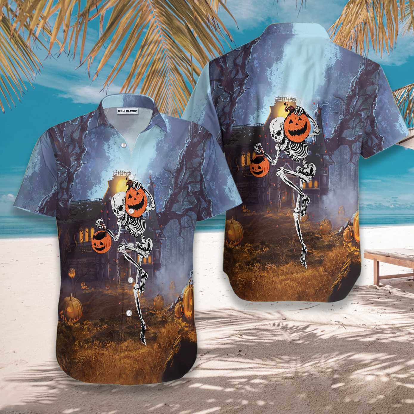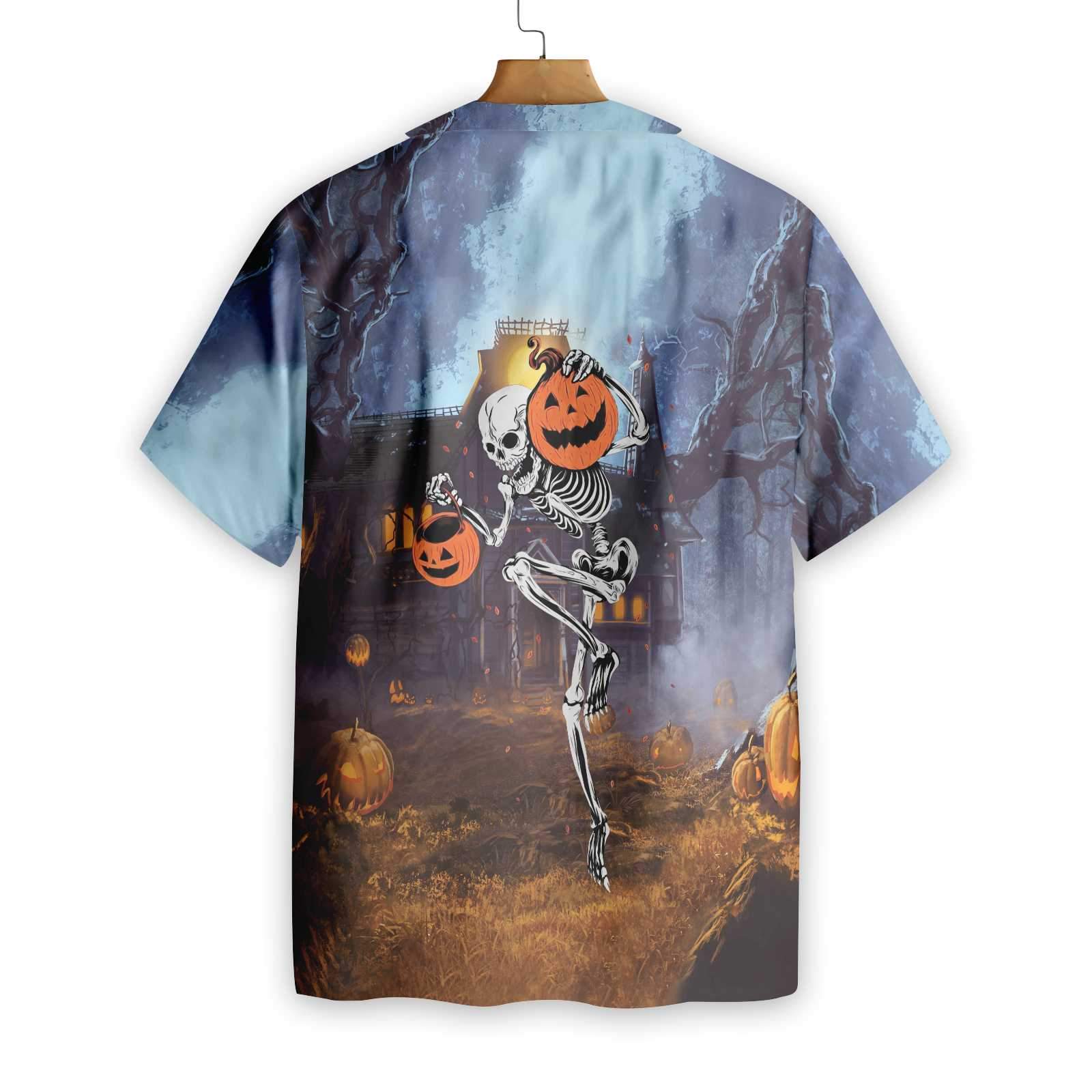 Skeleton Knows How To Dance Halloween Hawaiian Shirt, Spooky Pumpkin Shirt
