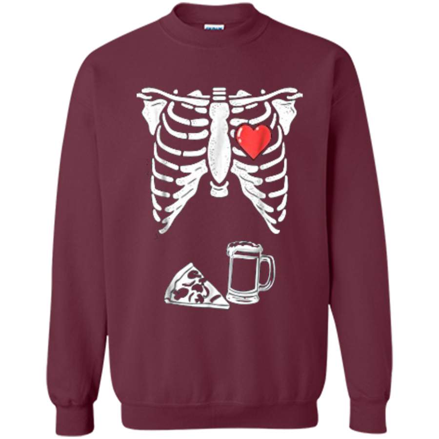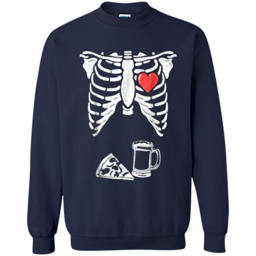 Skeleton Pregnancy Pizza Beer Xray Halloween Soon Dad Printed Crewneck Pullover Sweatshirt