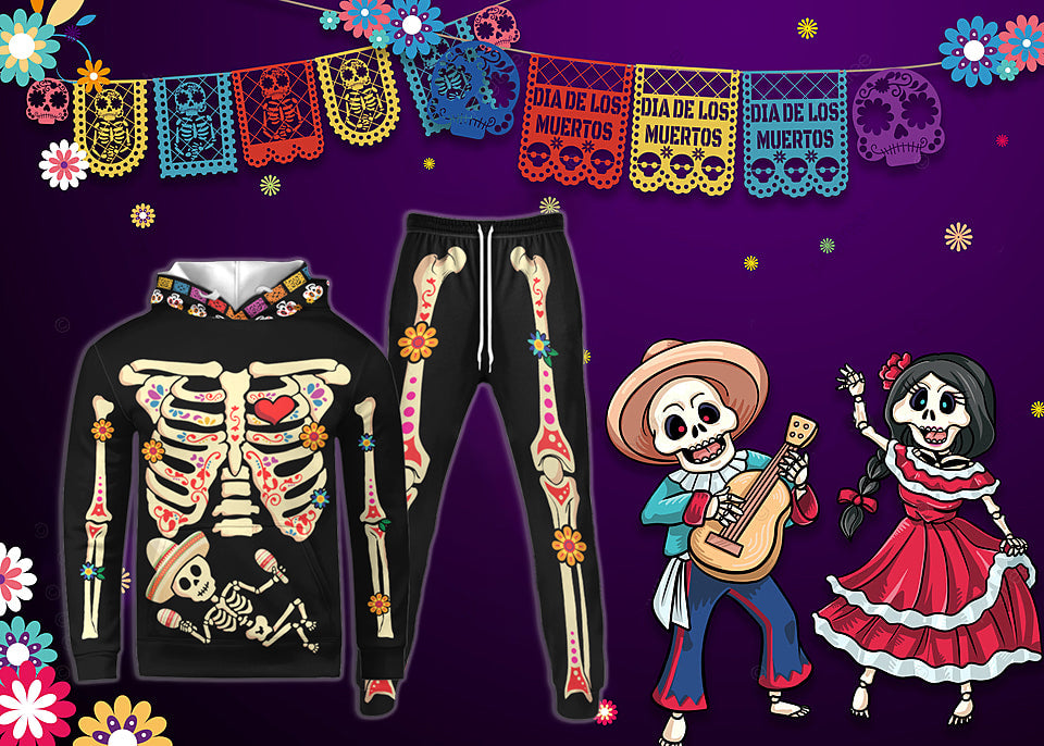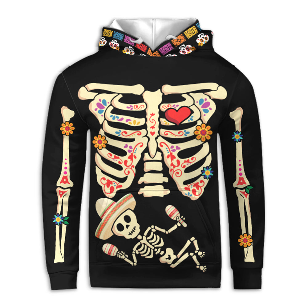 Skeleton Pregnant Women With Baby And Mexico Pattern For Halloween Gift Hoodie & Sweatpants Set