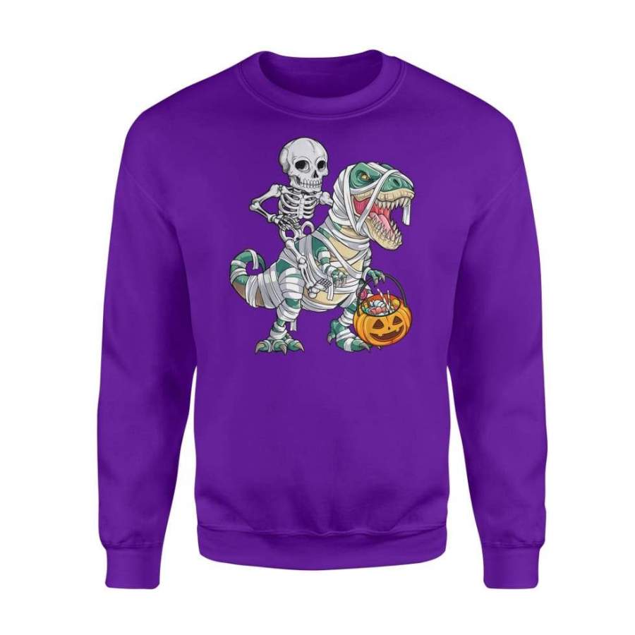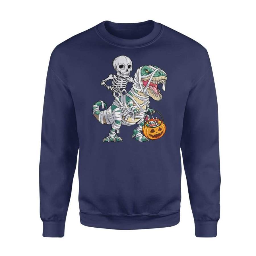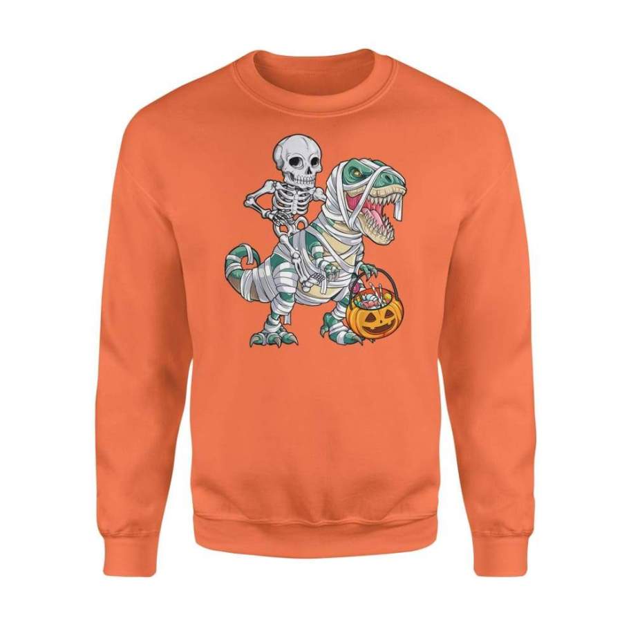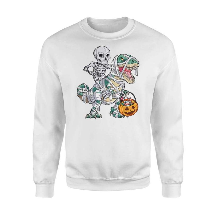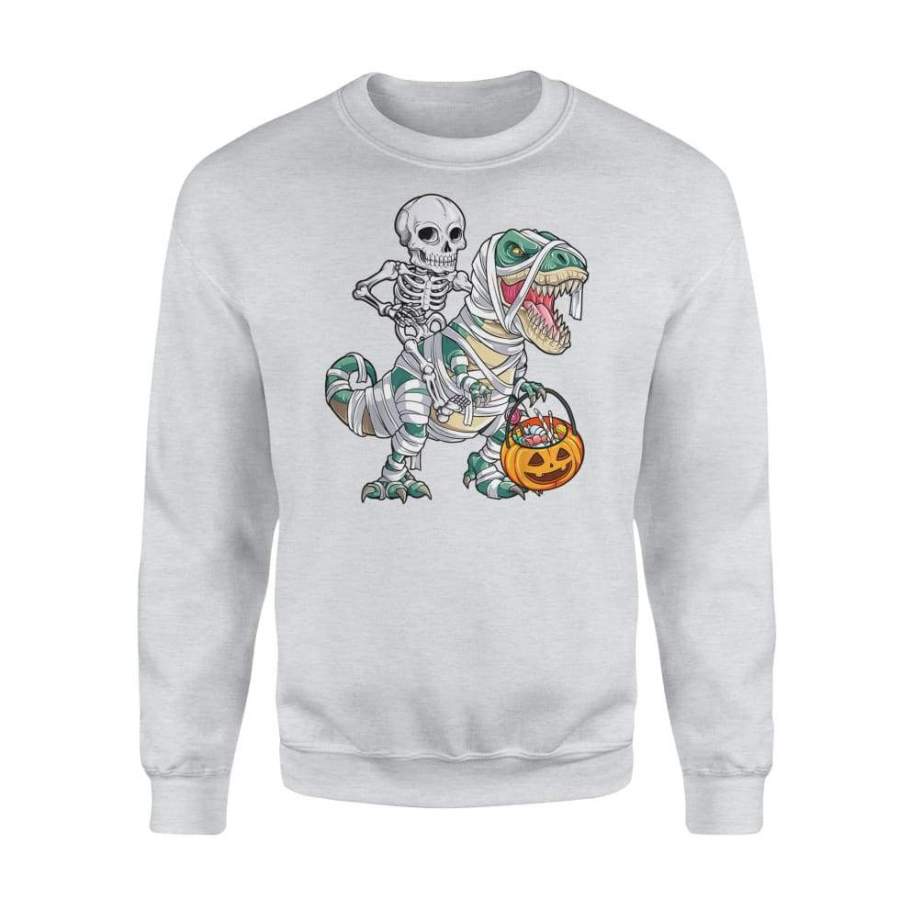 Skeleton Riding Mummy Dinosaur T Rex Halloween Kids Boys Men – Standard Fleece Sweatshirt