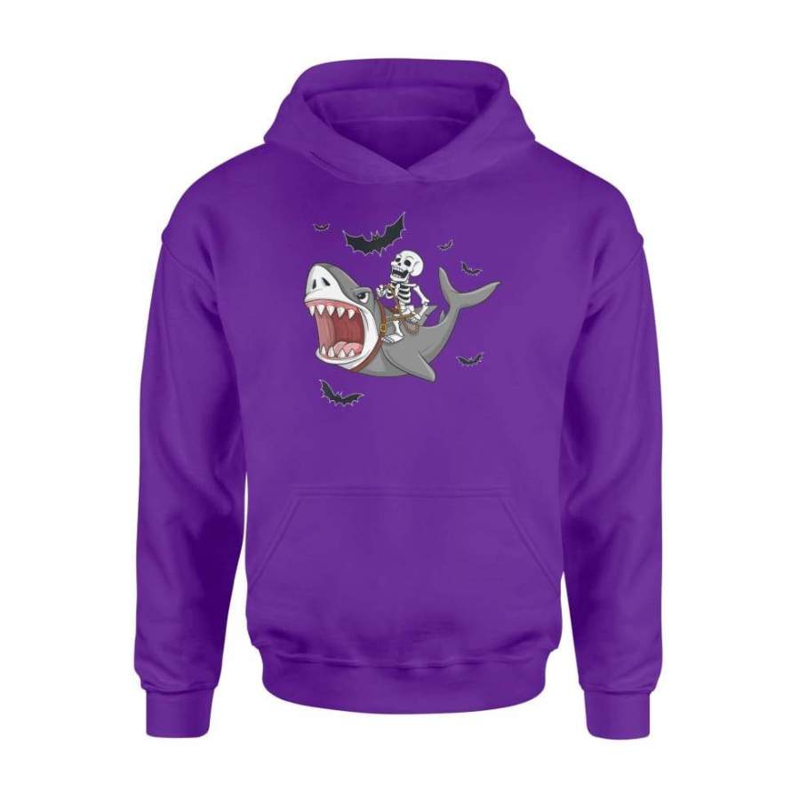 Skeleton Riding Shark Funny Halloween Boys Girls – Standard Hoodie
