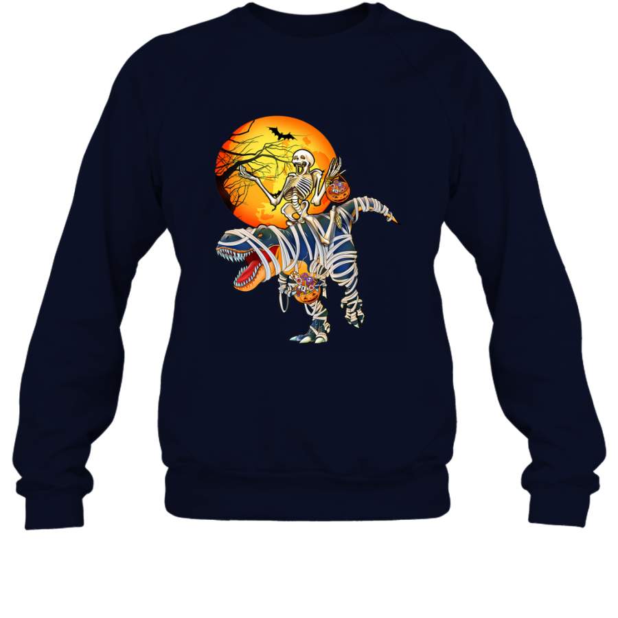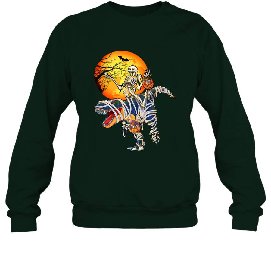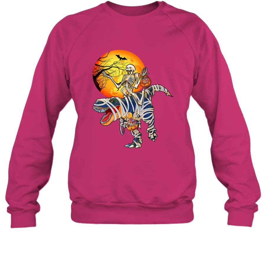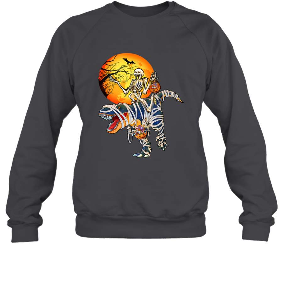 Skeleton Riding T Rex Funny Halloween Crewneck Sweatshirt