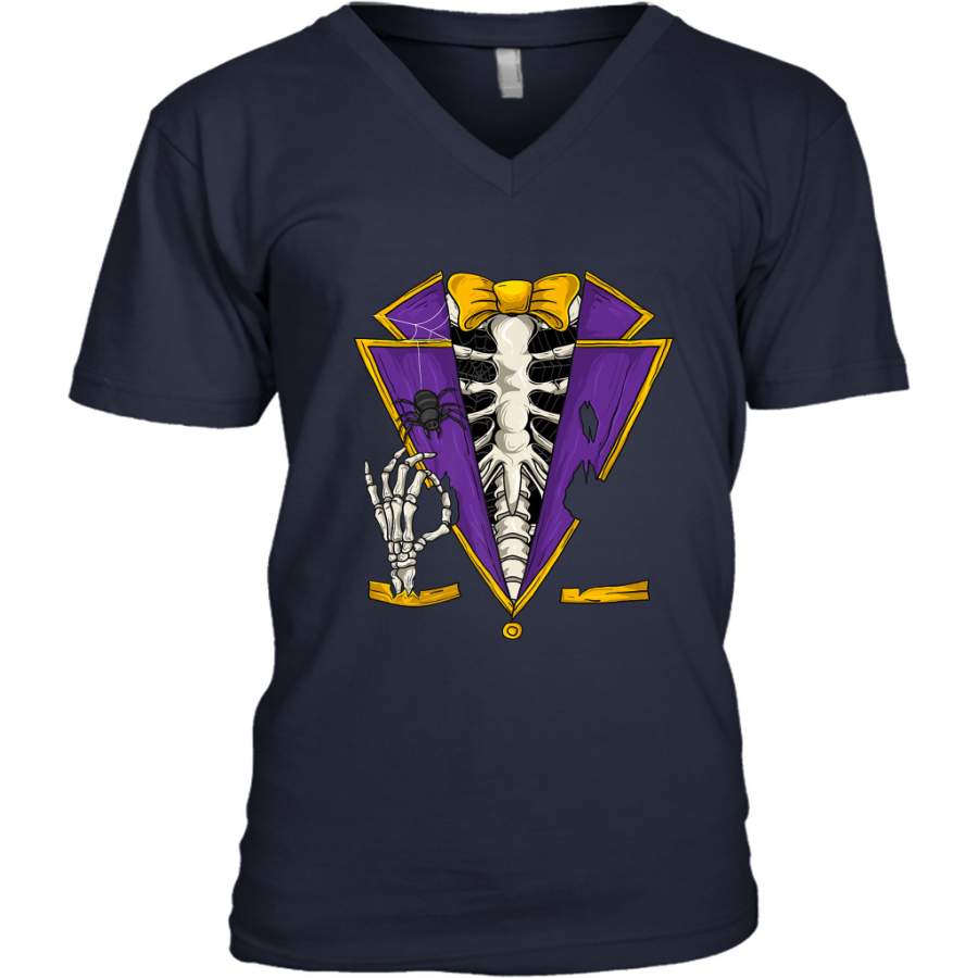Skeleton Tuxedo Suit Halloween Costume Bones Men’s V-Neck