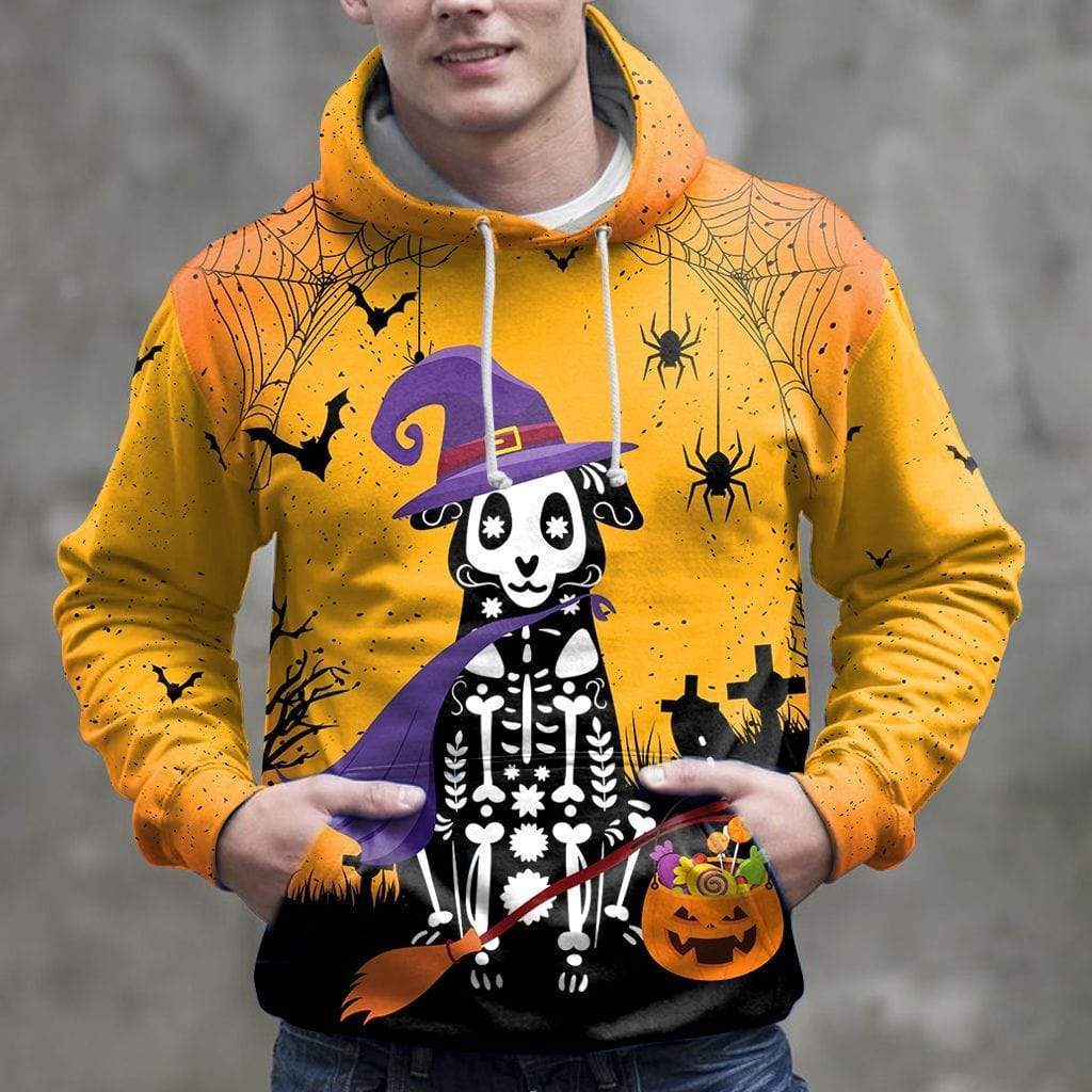 Skeleton Witch Dog Halloween Orange 3D All-Over Print Unisex Hoodie