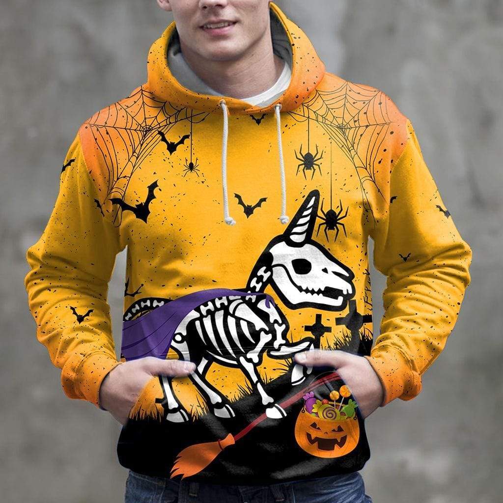 Skeleton Witch Unicorn Halloween Orange 3D All-Over Print Unisex Hoodie