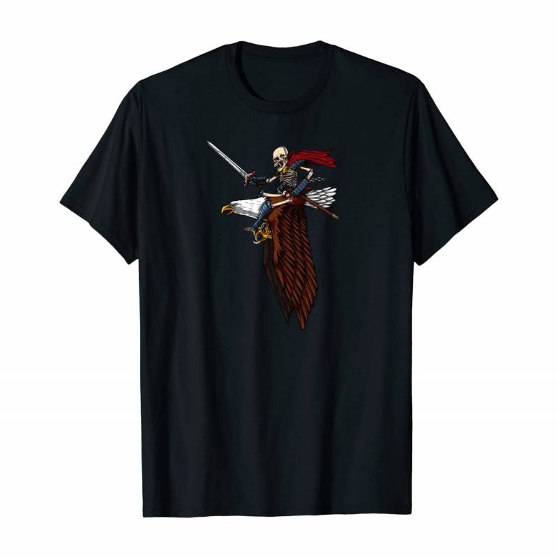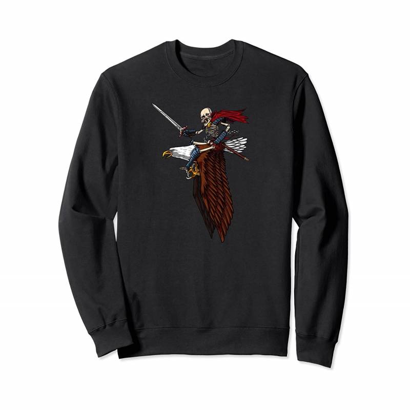 Skeleton Zombie Warrior Riding An Eagle Bird Halloween Pullover Hoodie, T-Shirt, Sweatshirt