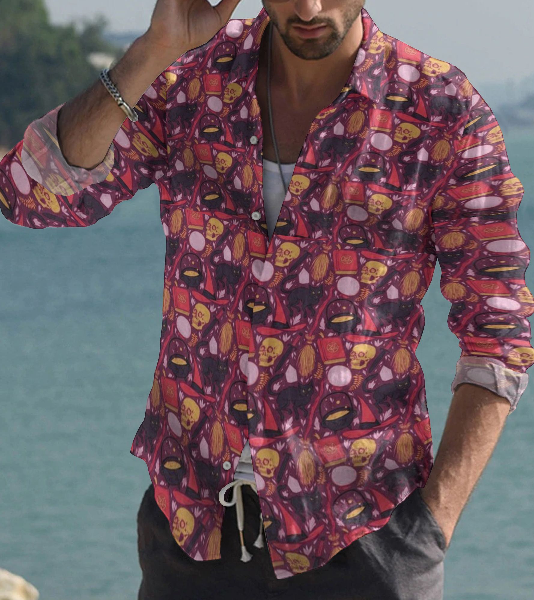 Skull Cotton And Linen Casual Shirt, Halloween Skull Linen Shirt