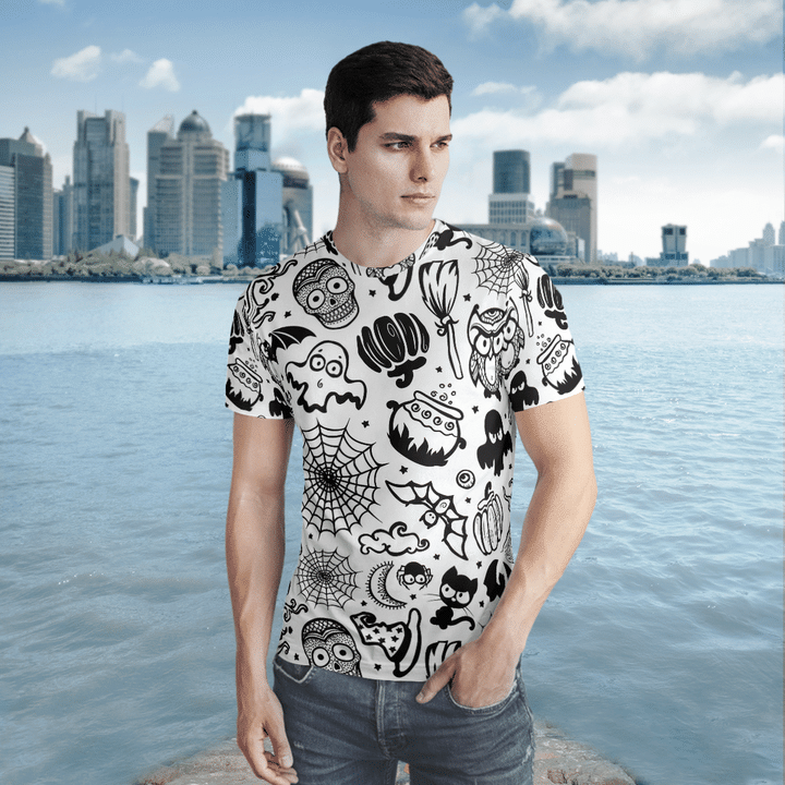 Skull Ghost Bat Pattern Halloween White 3D All-Over Print Unisex T-Shirt