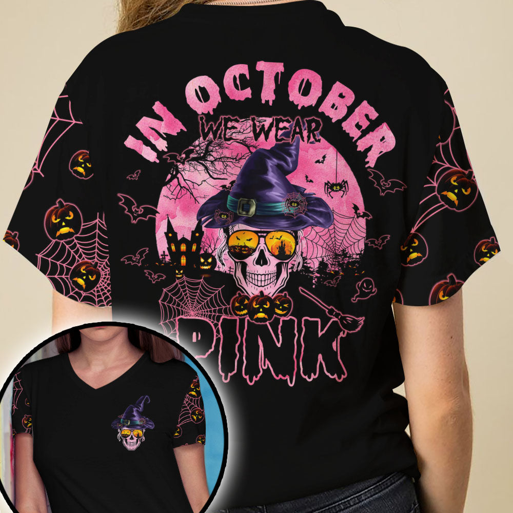 Skull In October We Wear Pink Halloween All Over Print – Tltr0408212