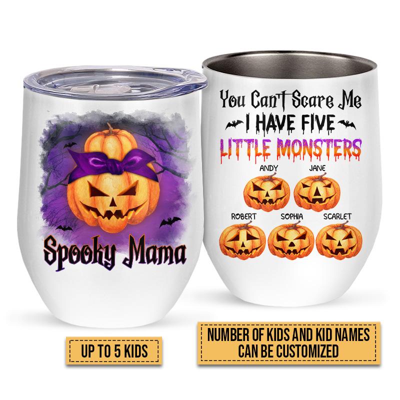 Skull Mom, Skeleton Mother, Halloween Family Spooky Mama You Can’T Scare Me Custom Wine Tumbler