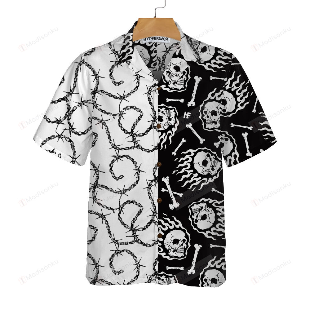 Skull On Fire With Steel Barbed Wire Skull Hawaiian Shirt
