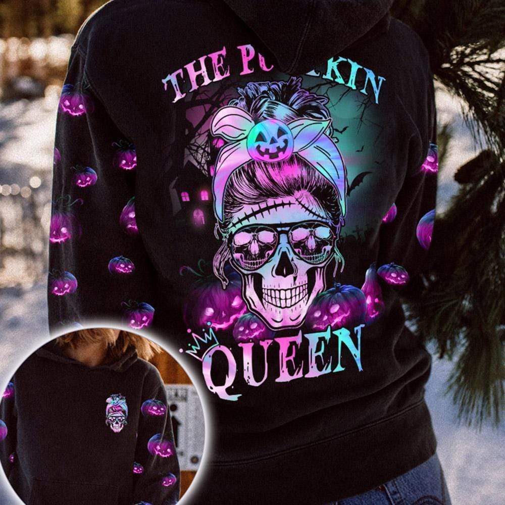 Skull Pumpkin The Pumpkin Queen Halloween Black 3D All-Over Print Unisex Hoodie