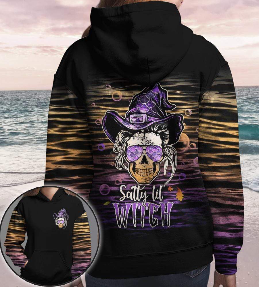 Skull Purple Sunglass Satty Lil’ Witch Halloween Striped 3D All-Over Print Unisex Hoodie