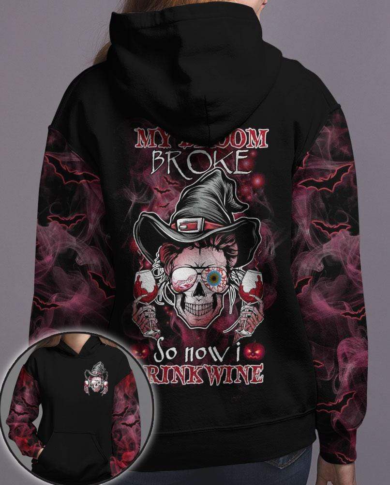 Skull Red Eyes So Now I Drink Wine Halloween Black 3D All-Over Print Unisex Hoodie