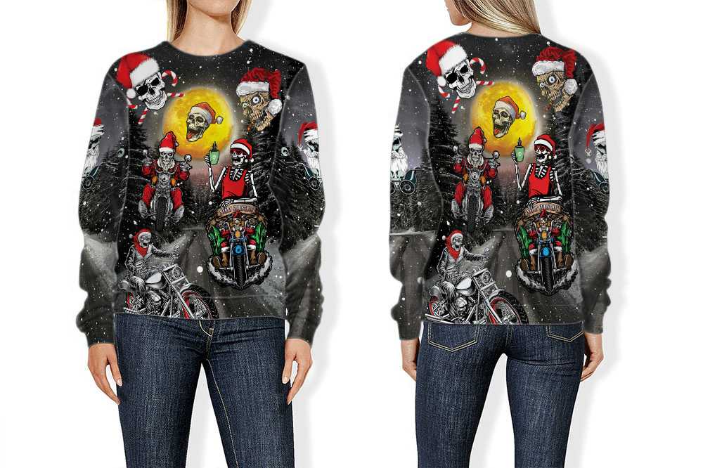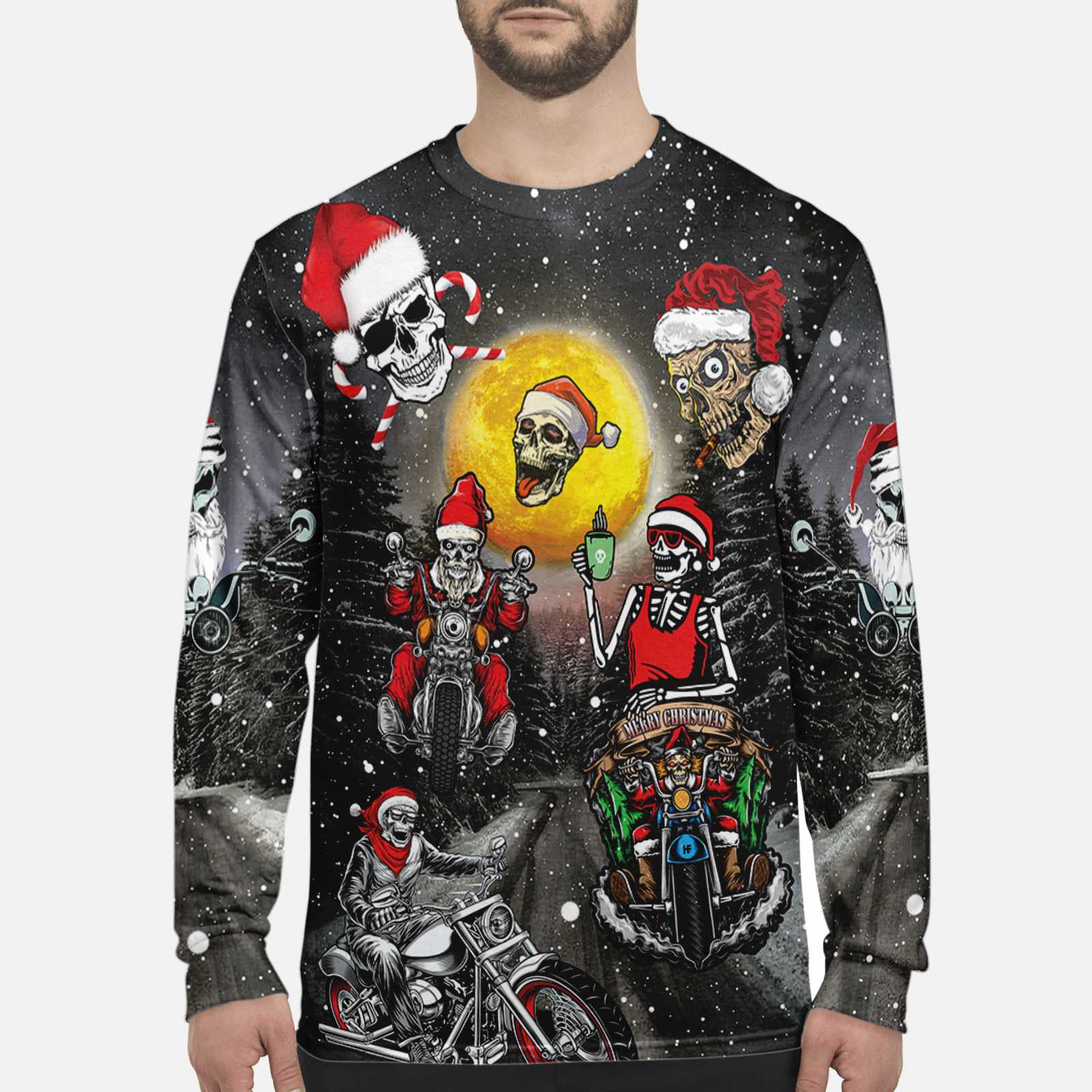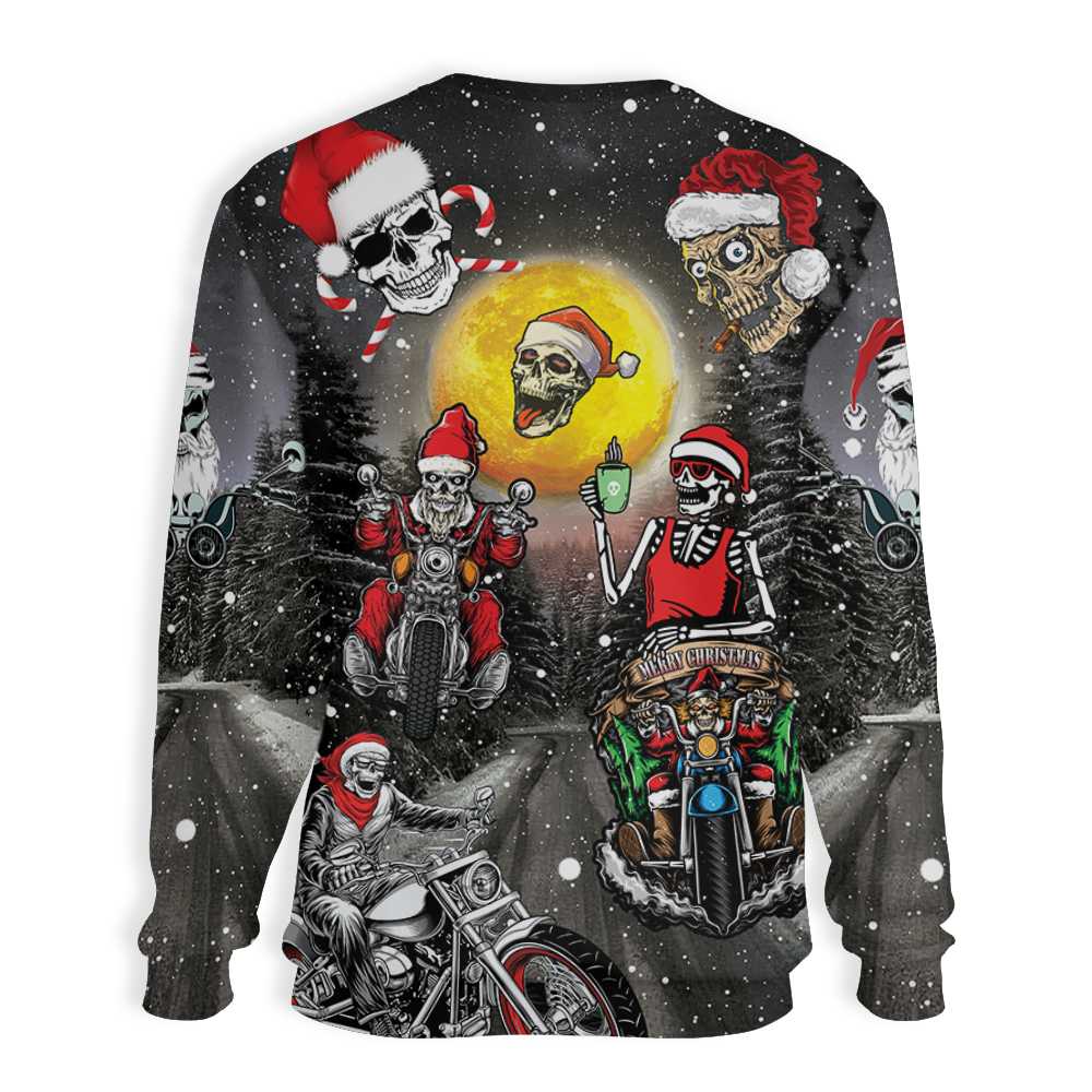 Skull Santa Motorcycle Merry Christmas All Over Print Sweatshirt, Christmas Skull Sweatshirt, Best Christmas Gift