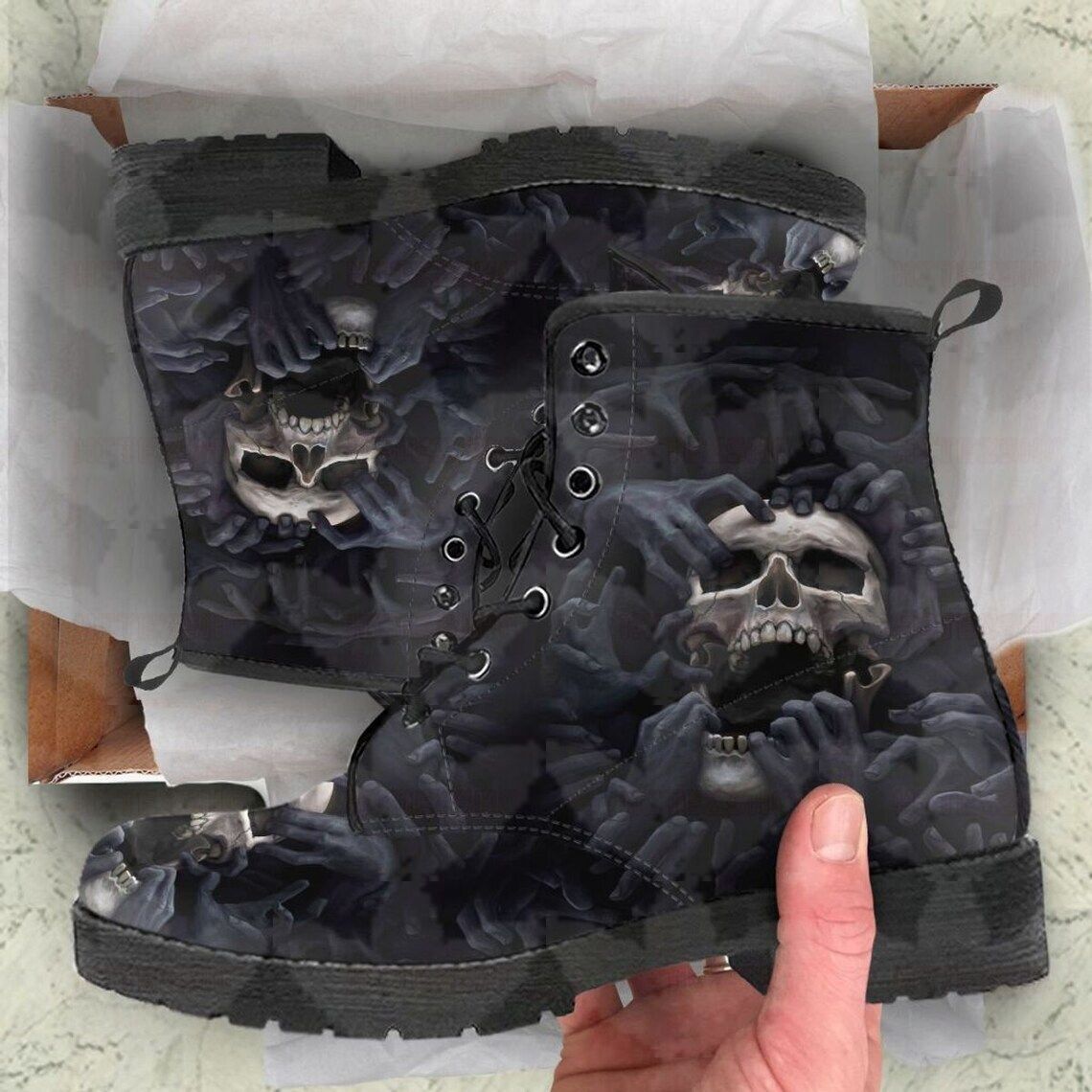 Skull Scary Combat Boots – Gothic Satanic Hiking Boots – Halloween Shoes – Casual Boots Lace Up Vegan Leather Boots