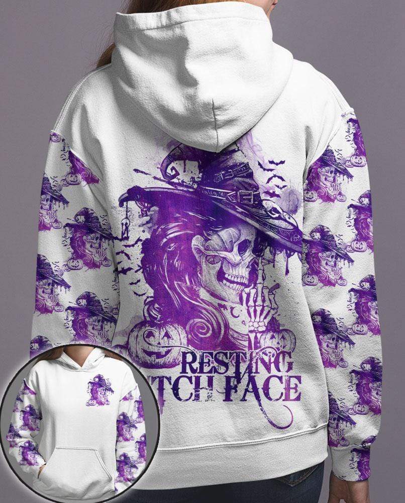 Skull Scary Witch Resting Witch Face Halloween White Purple 3D All-Over Print Unisex Hoodie