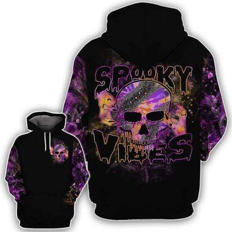 Skull Spooky Vibes Halloween Black 3D All-Over Print Unisex Hoodie