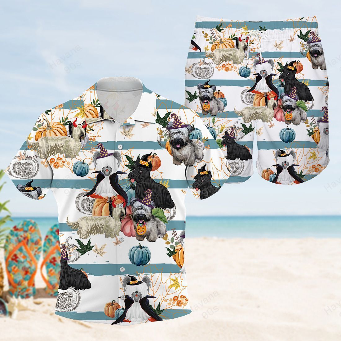 Skye Terrier Hawaiian Shirt Halloween Pumpkin Retro