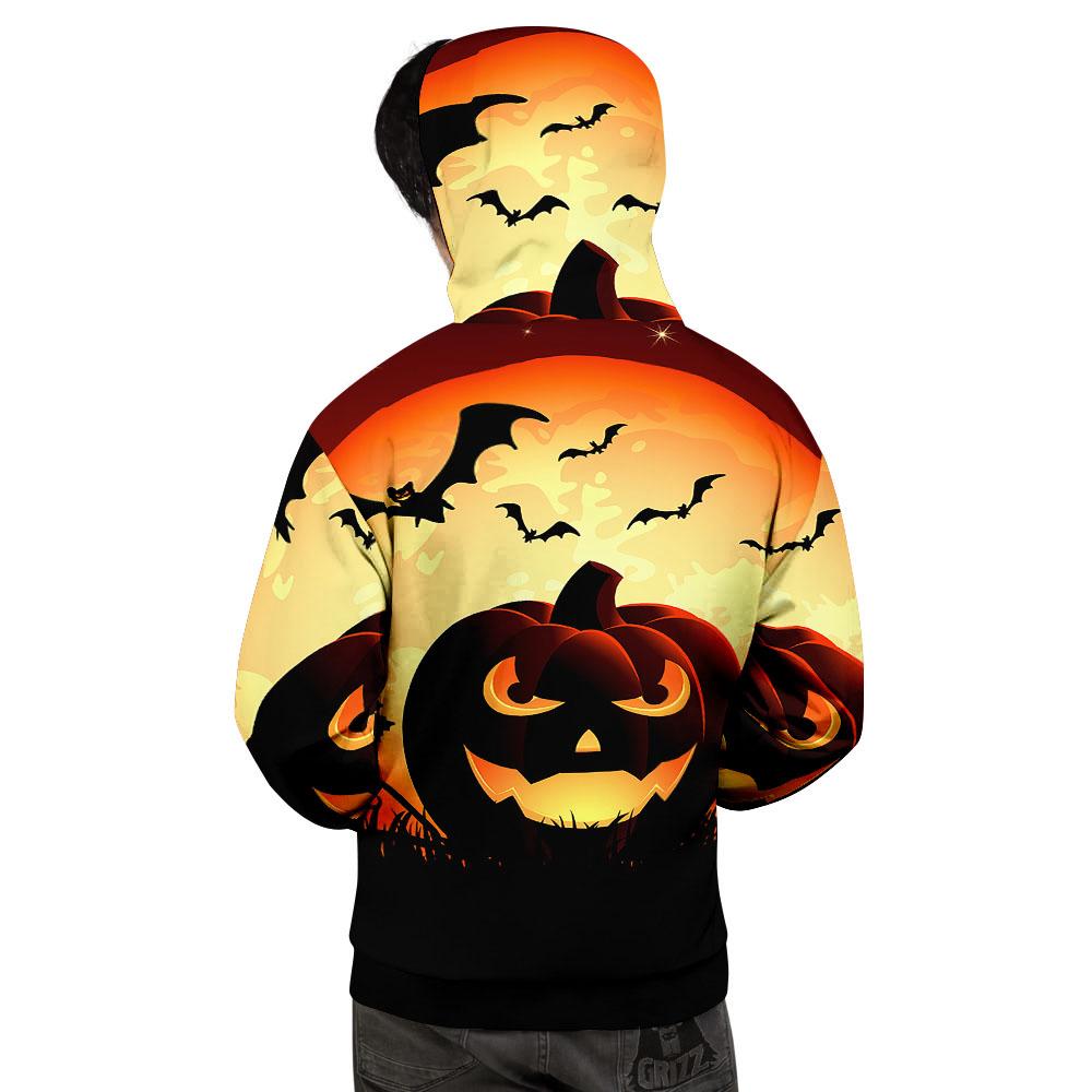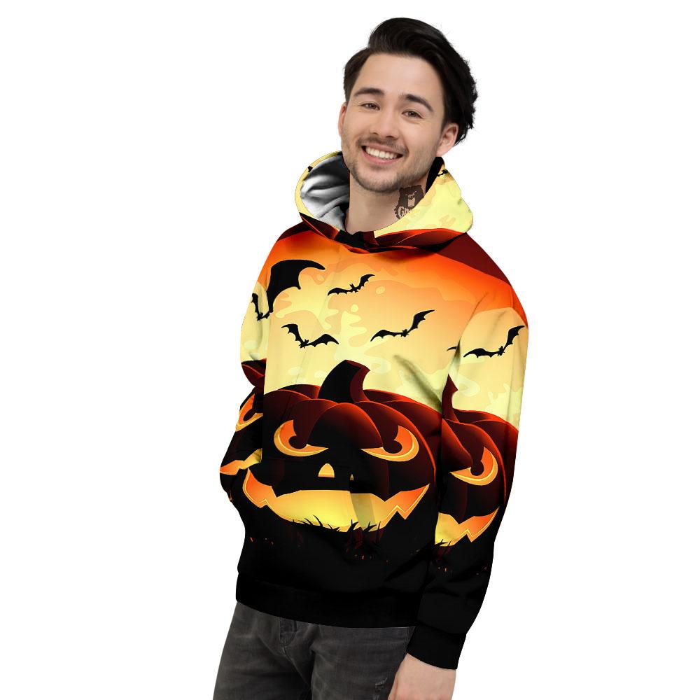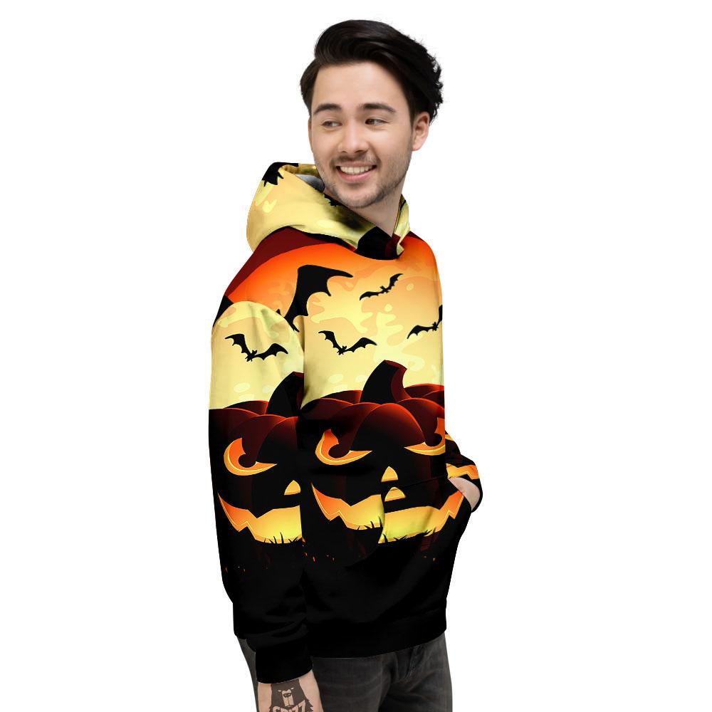 Smiley Faces Halloween Pumpkin Print Men’S Hoodie