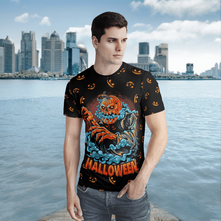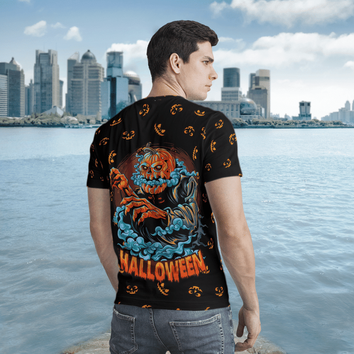 Smoke Pumpkin Demon Halloween Black 3D All-Over Print Unisex T-Shirt