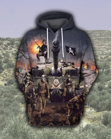Soldier Skull Tank Halloween Grey 3D All-Over Print Unisex Hoodie