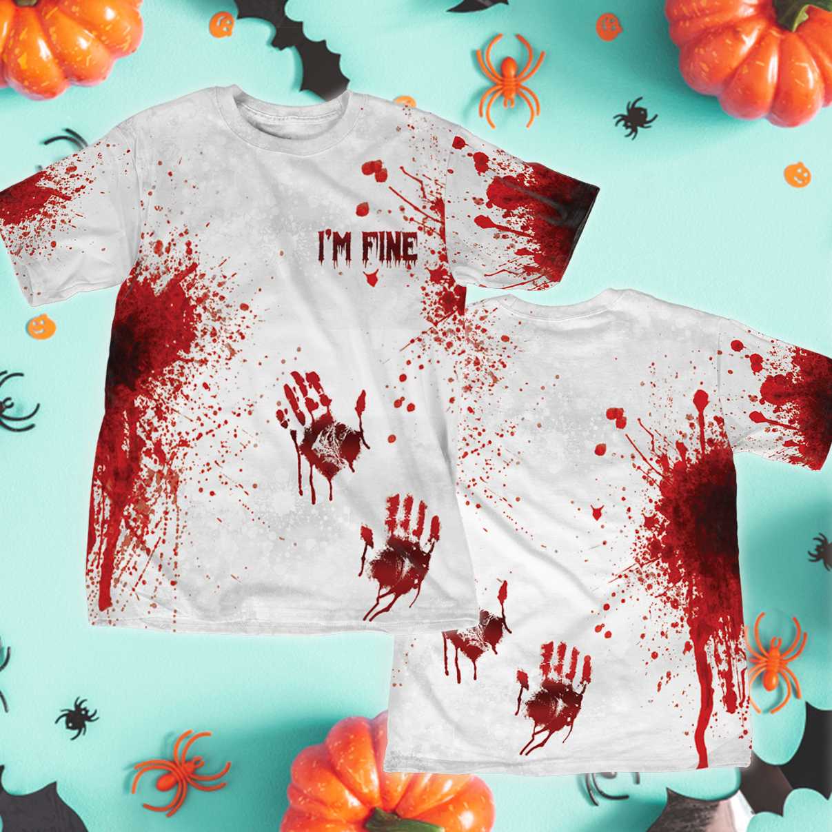 Spooky Halloween Blood Splatter All Over Print T-Shirt, Best Halloween Themed Shirt, Bloody Tee Shirt