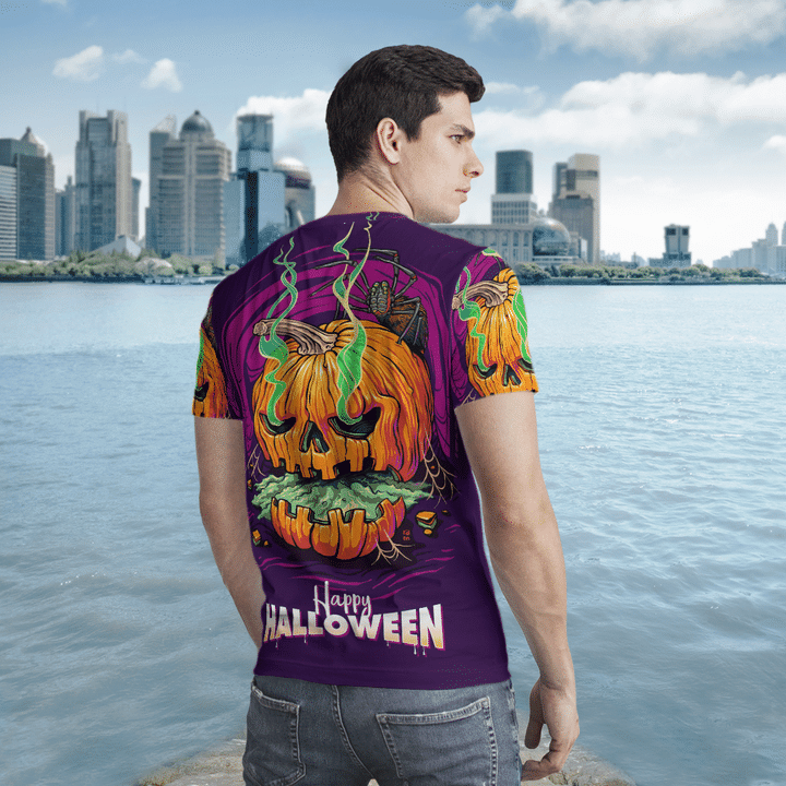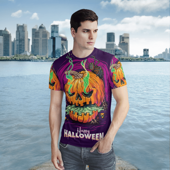Spooky Pumpkin Spider Happy Halloween Purple 3D All-Over Print Unisex T-Shirt