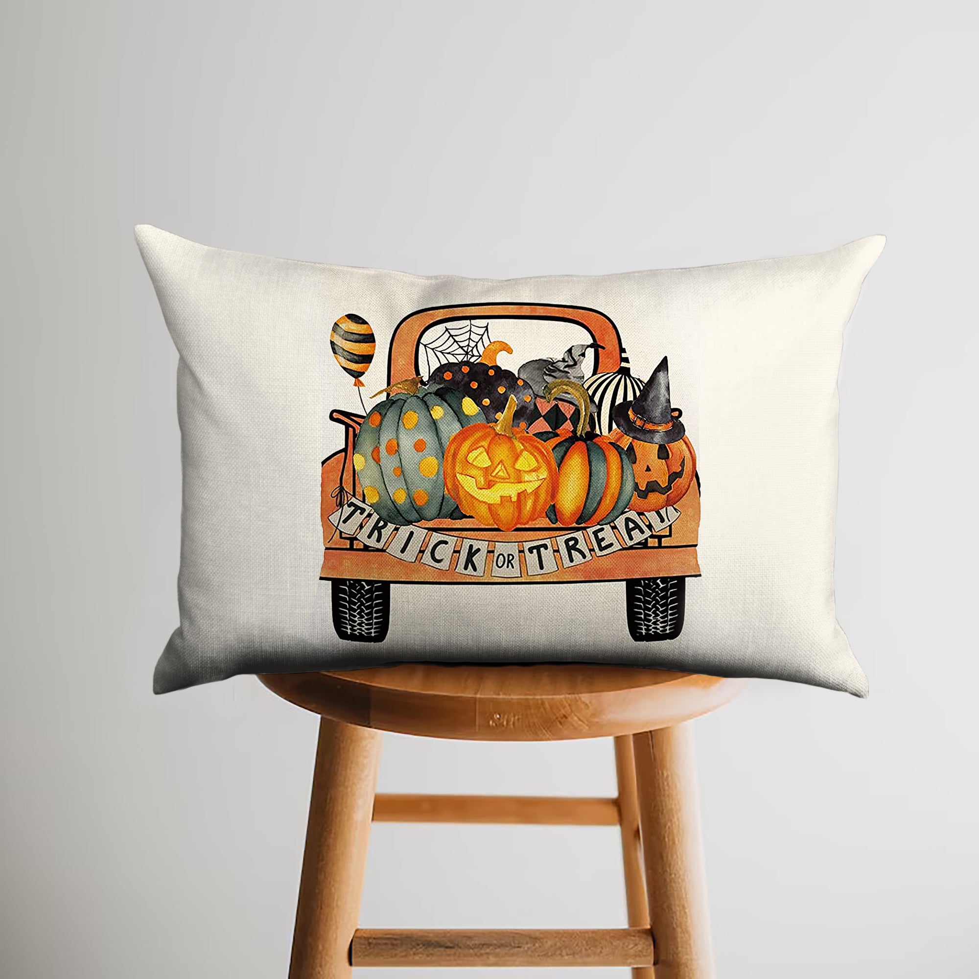Spooky Truck Jack O’ Lantern Trick Or Treat Halloween Throw Pillow