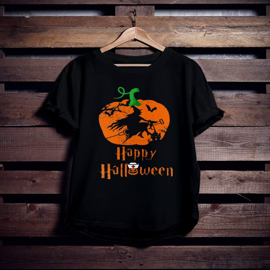 Standard Black Cotton Printed T Shirt – Happy Halloween