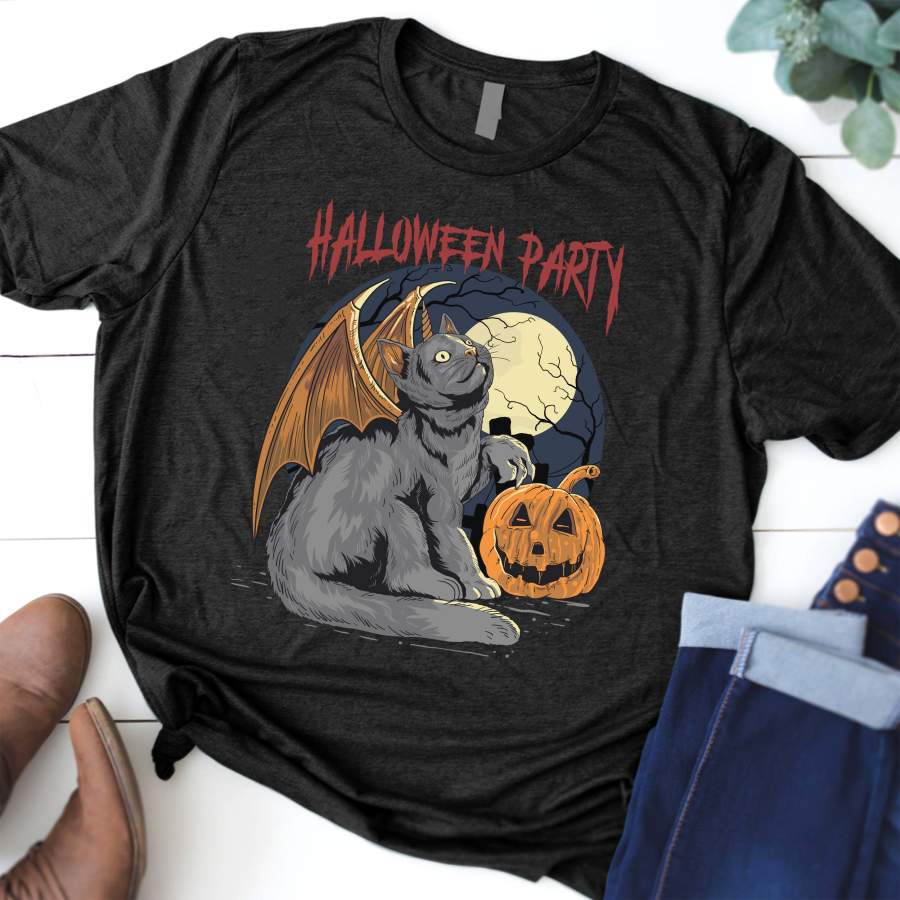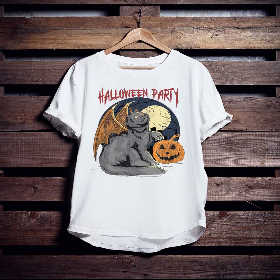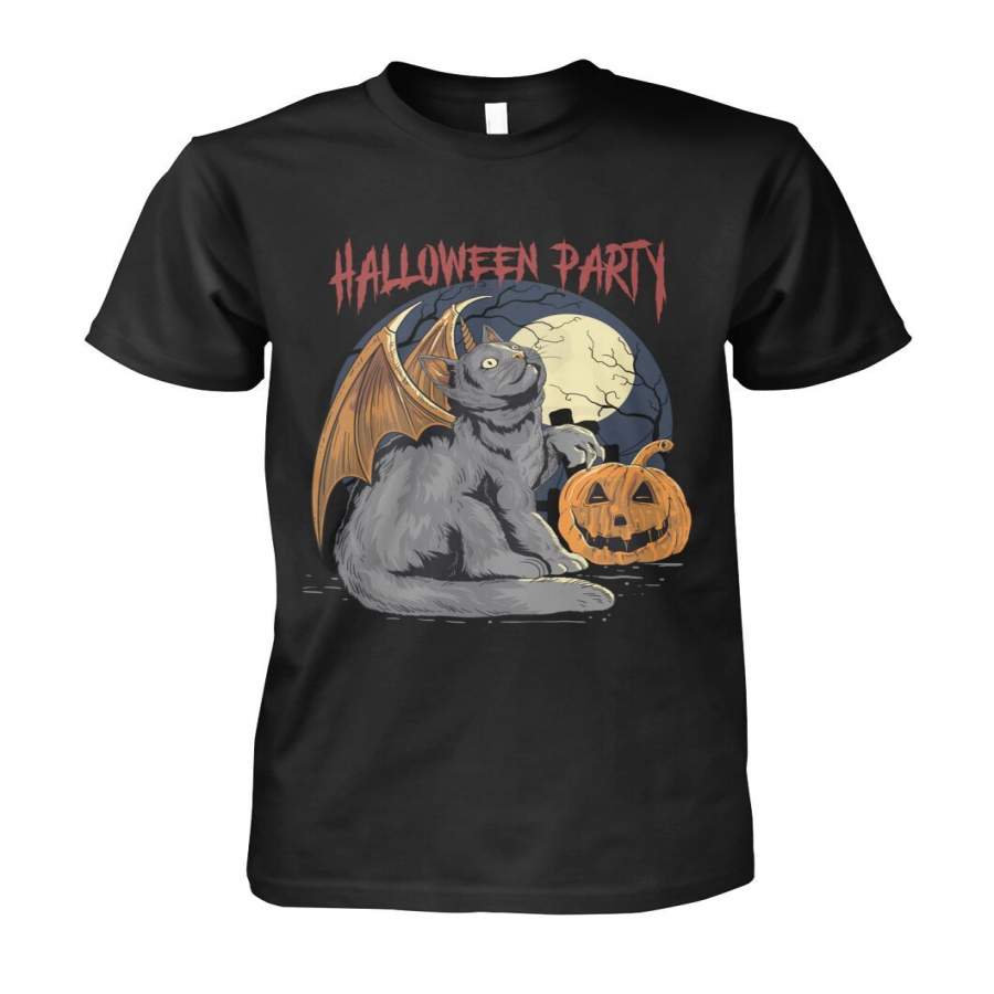 Standard Cotton Printed T Shirt – Halloween Party Cat