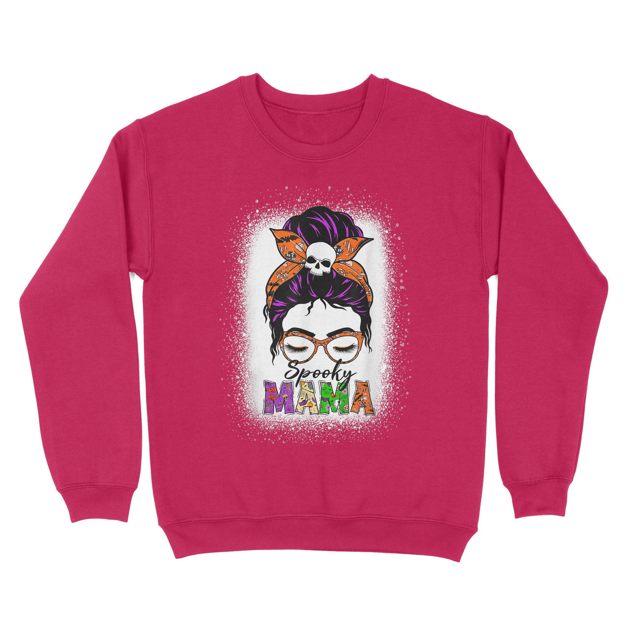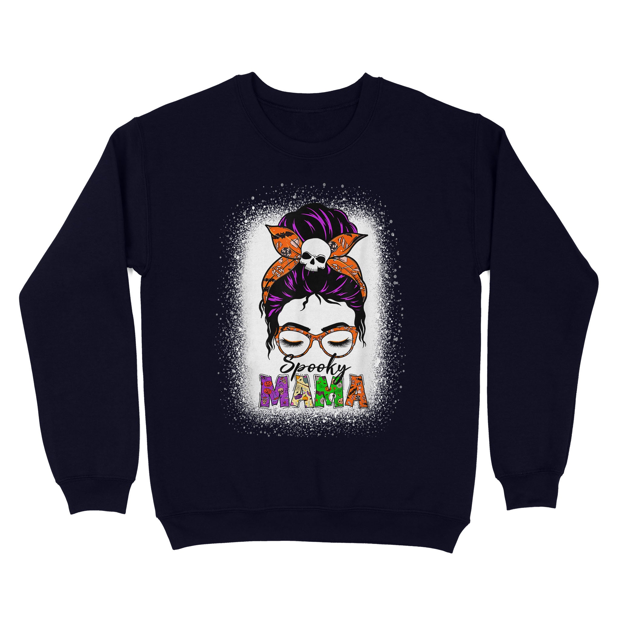 Standard Crew Neck Sweatshirt – Spooky Mama Messy Bun Skull Halloween Costume Momster Witchy Women Spooky Halloween Mommy