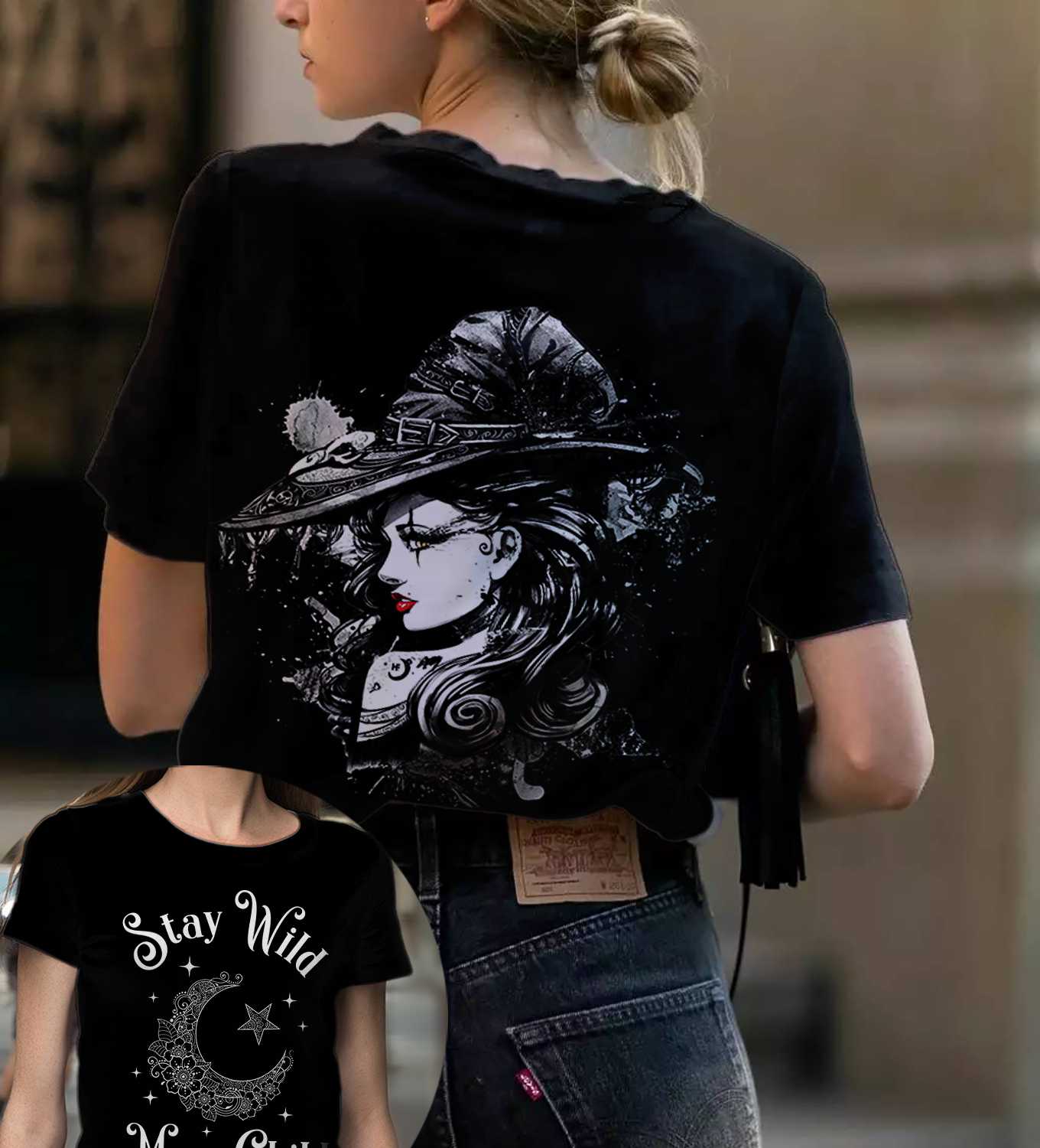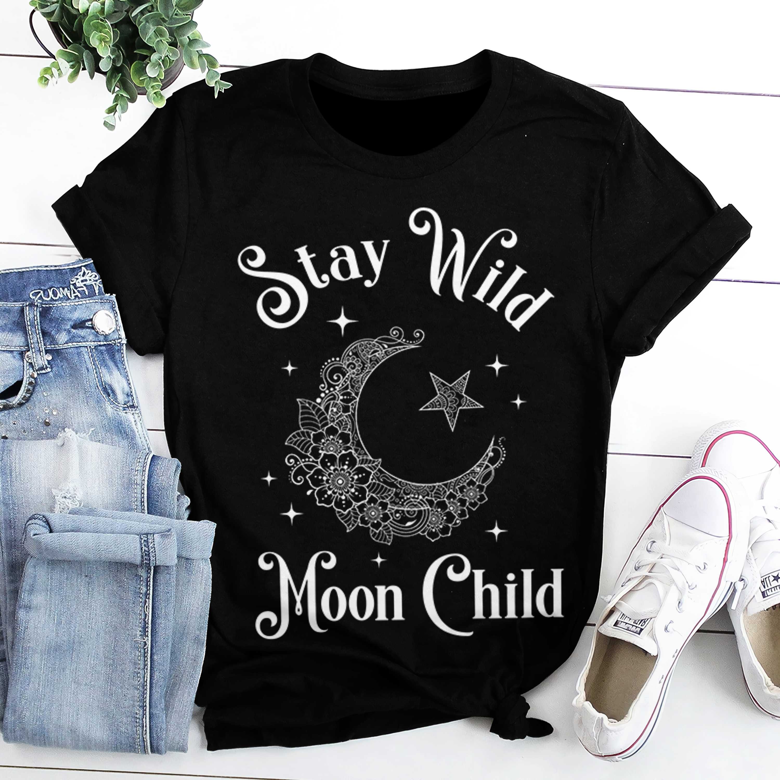 Stay Wild Moon Child All Over Print T-Shirt, Best Witch T-Shirt With Sayings, Cool Gift For Halloween