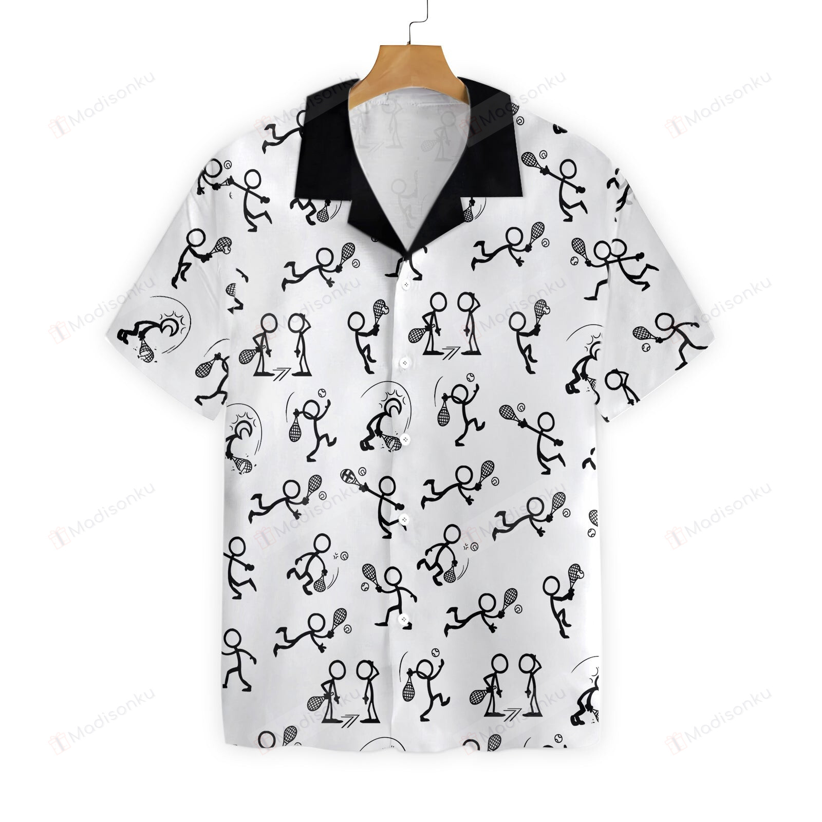 Stick Figures Tennis Black And White Hawaiian Shirt