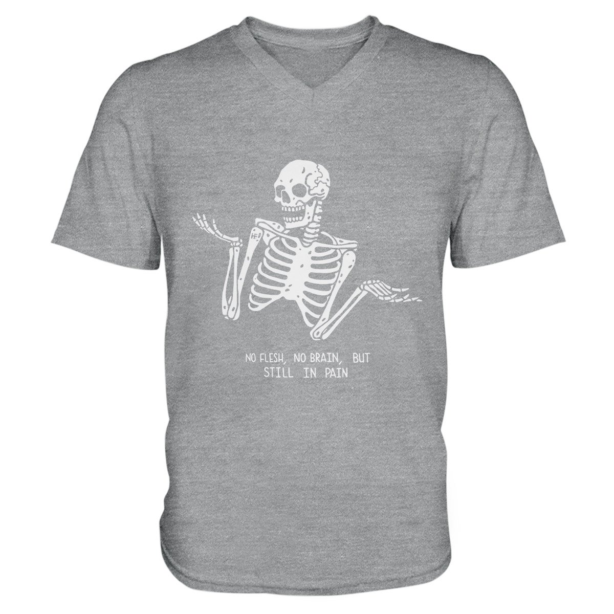Still In Pain Skeleton, Spooky Halloween Hand Shrug Skeleton Unisex V-Neck T-Shirt