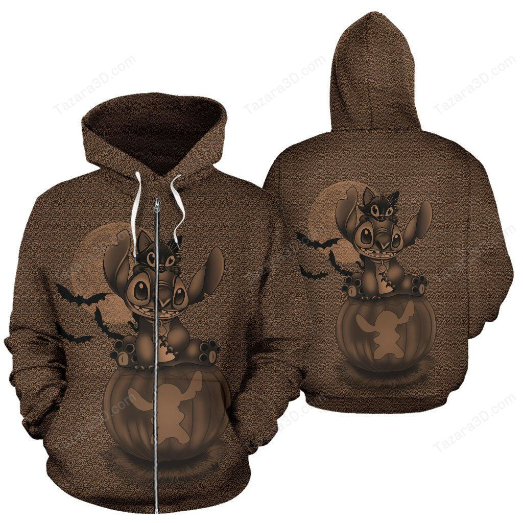 Stitch And Cat Halloween Zip-Up Hoodie