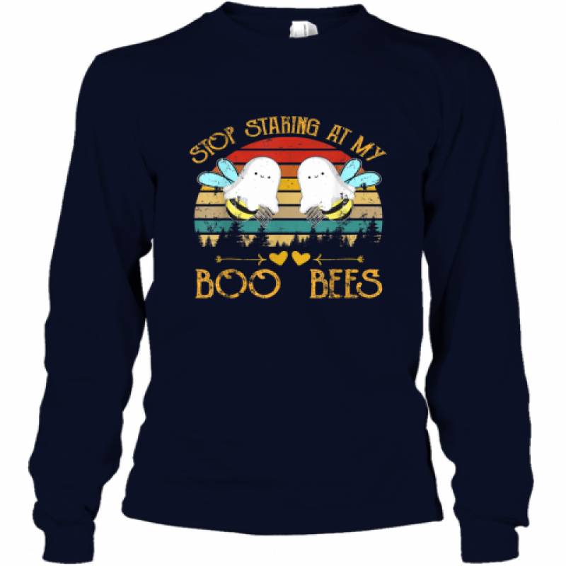 Stop Staring At My Boo Bees Halloween Ovarian Cancer March shirt Long Sleeve T-Shirt