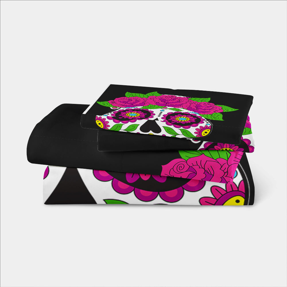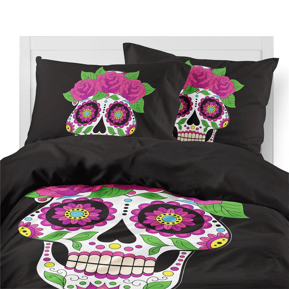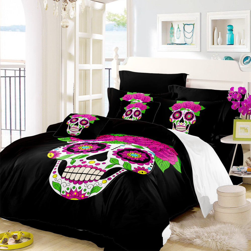 Sugar Skull Bedding Set Ladies Sweet Duvet Cover Flower Print Halloween Bed Cover Pillowcase Soft Bedclothes Home Decor