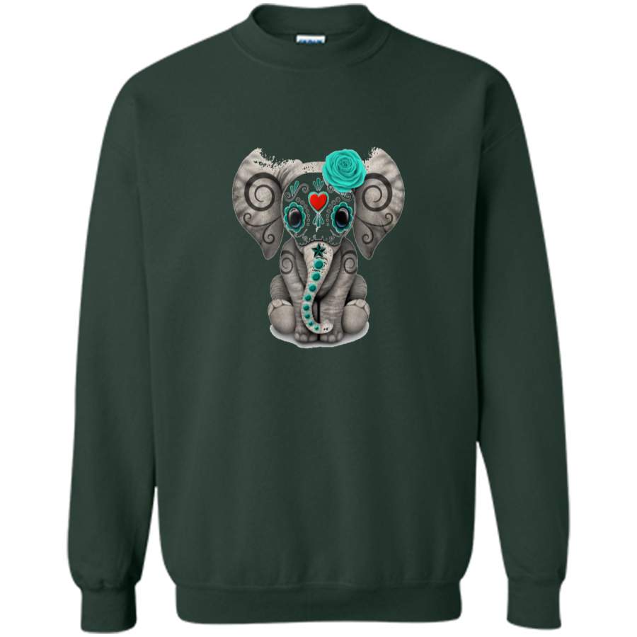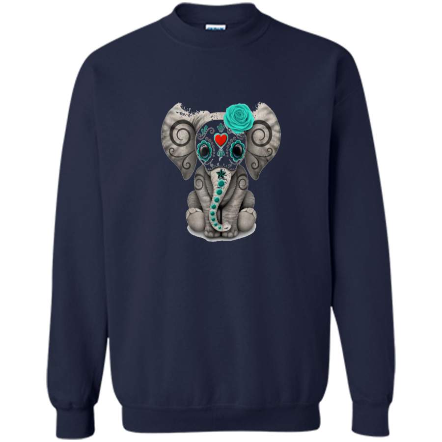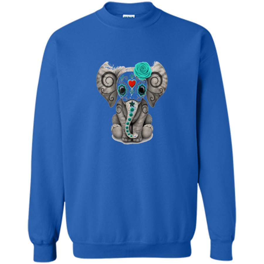 Sugar Skull Elephant Day Of The Dead Halloween Printed Crewneck Pullover Sweatshirt