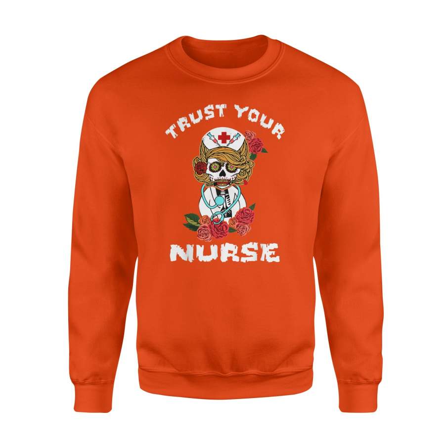 Sugar Skull Halloween Trust Your Nurse Sweatshirt