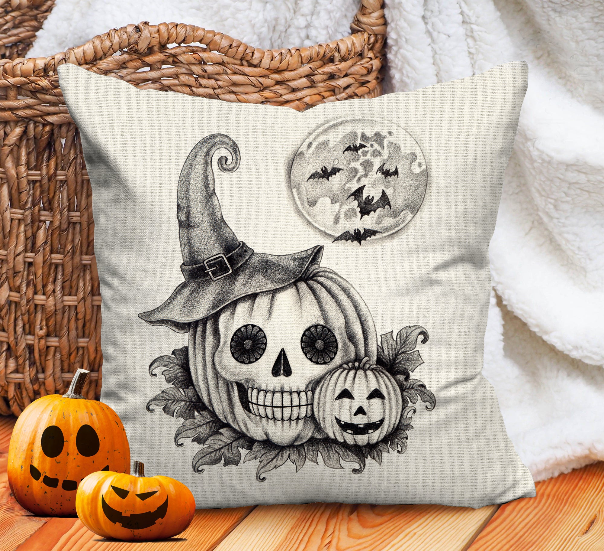 Sugar Skull Pumpkin Happy Halloween Throw Pillow