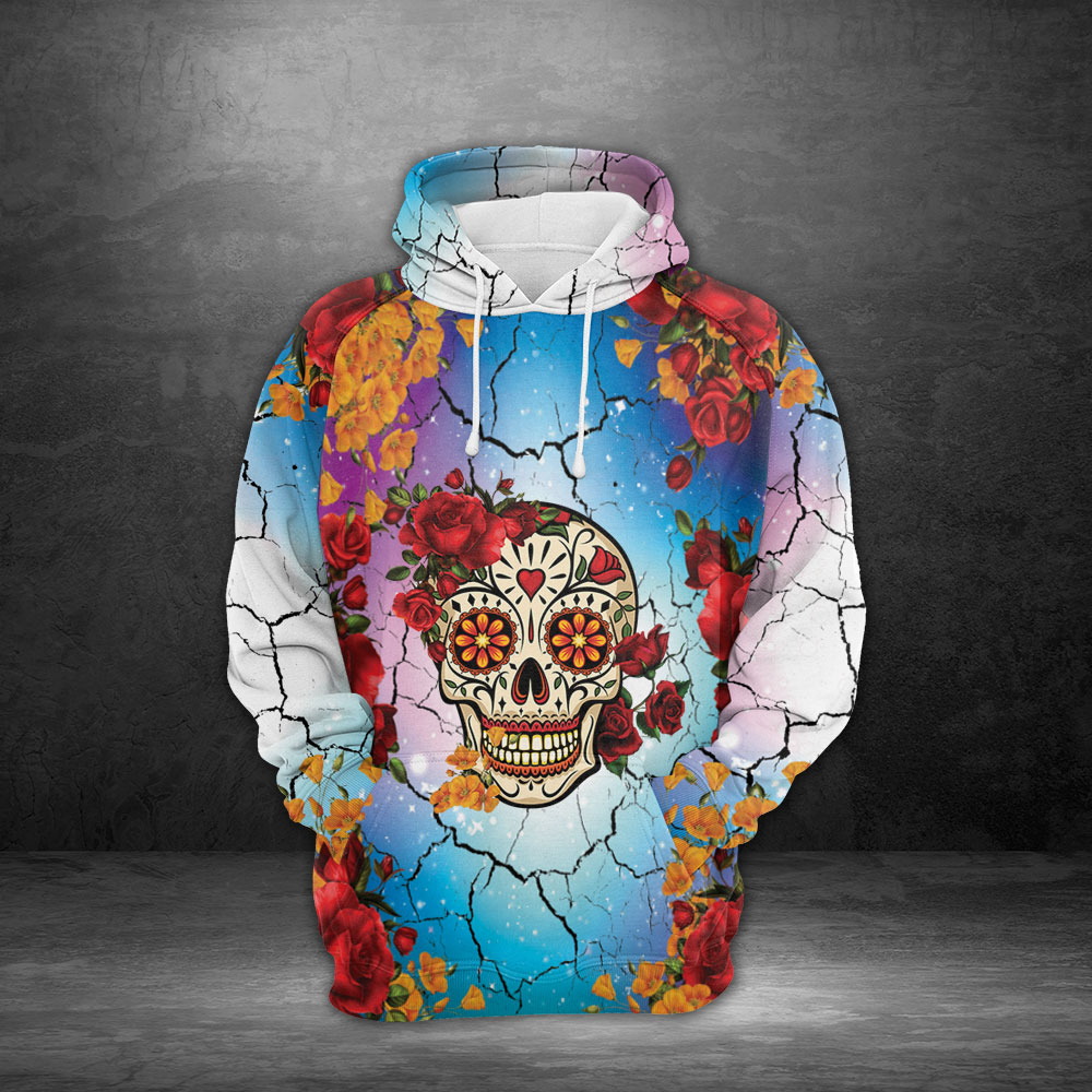 Sugar Skull Roses Halloween Colorful 3D All-Over Print Unisex Hoodie