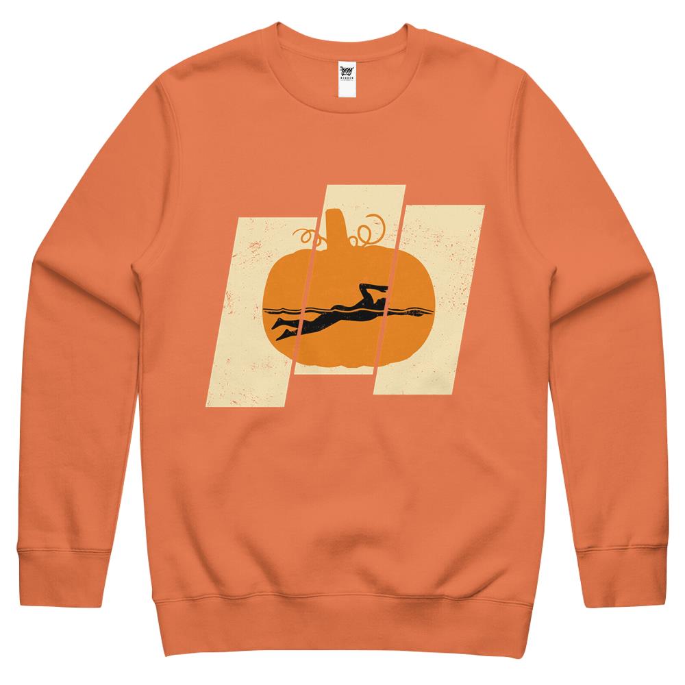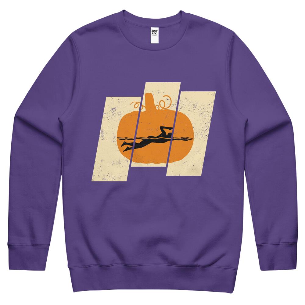 Swimming Pumpkin Halloween Vintage Swimmer Costume Sports Lovers Crewneck Sweatshirt