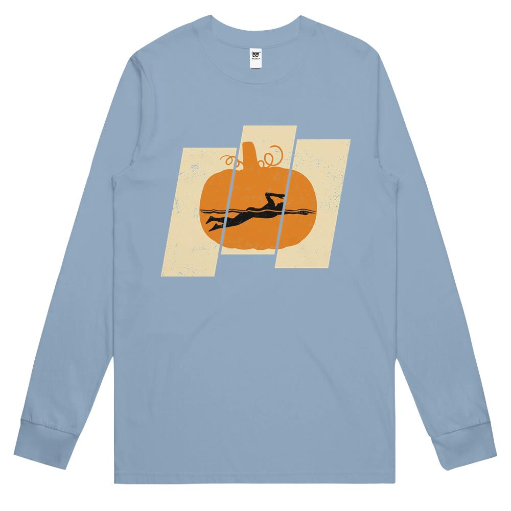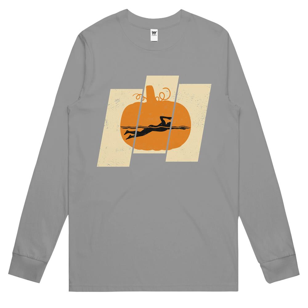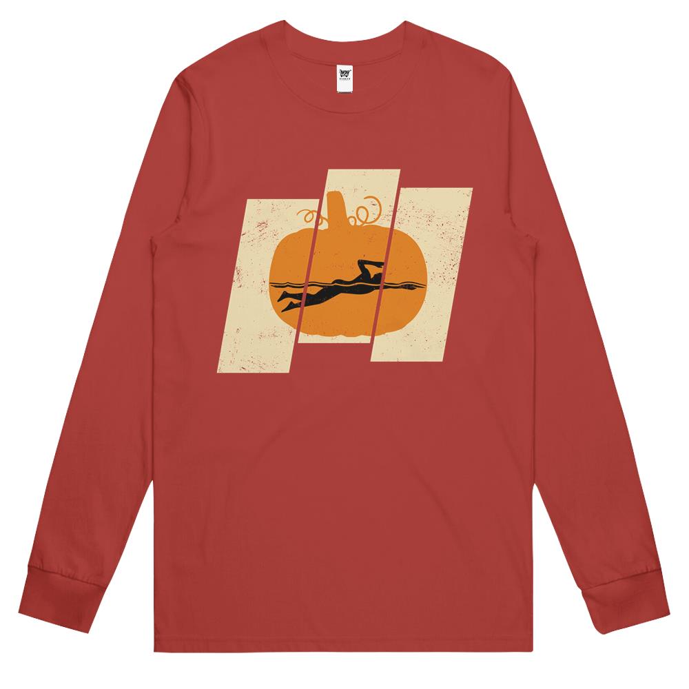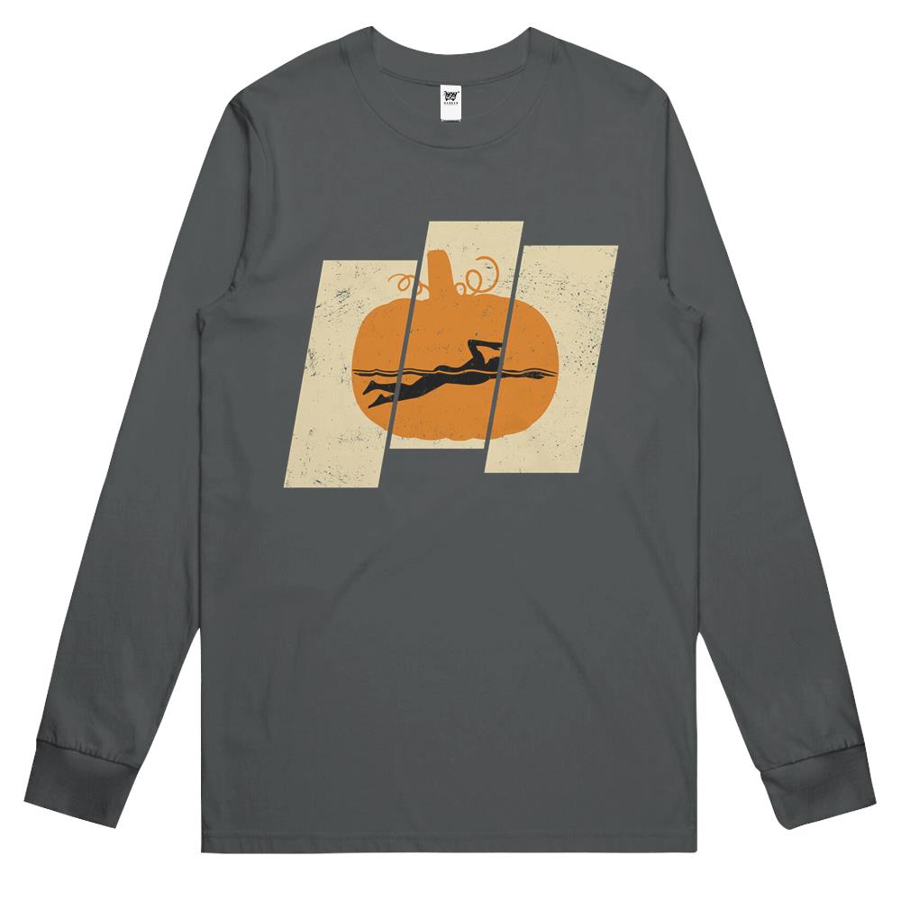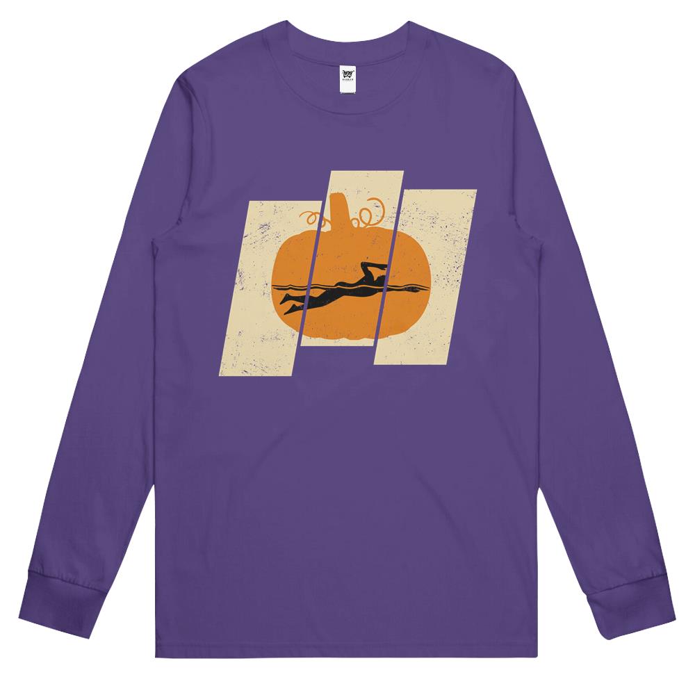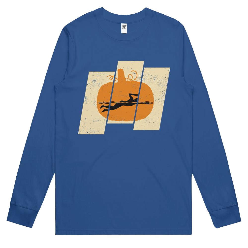Swimming Pumpkin Halloween Vintage Swimmer Costume Sports Lovers Long Sleeve T Shirts