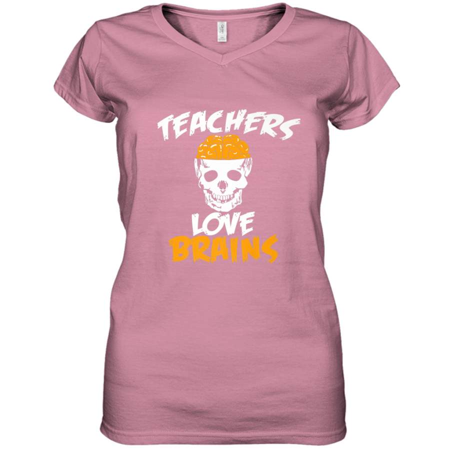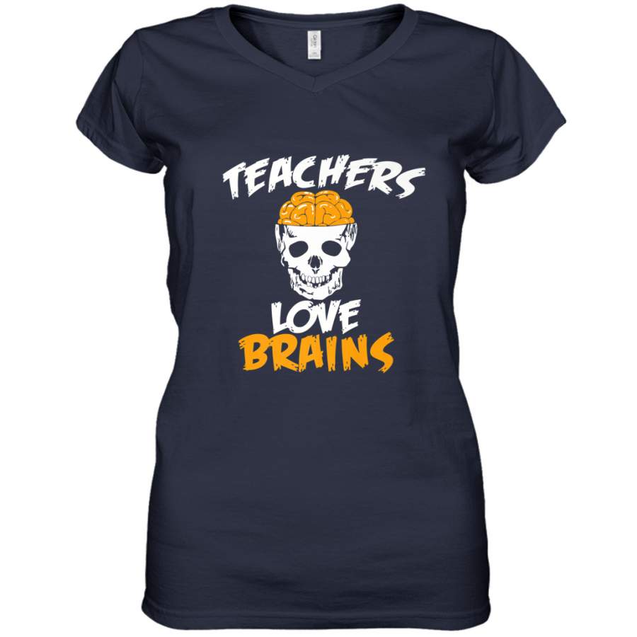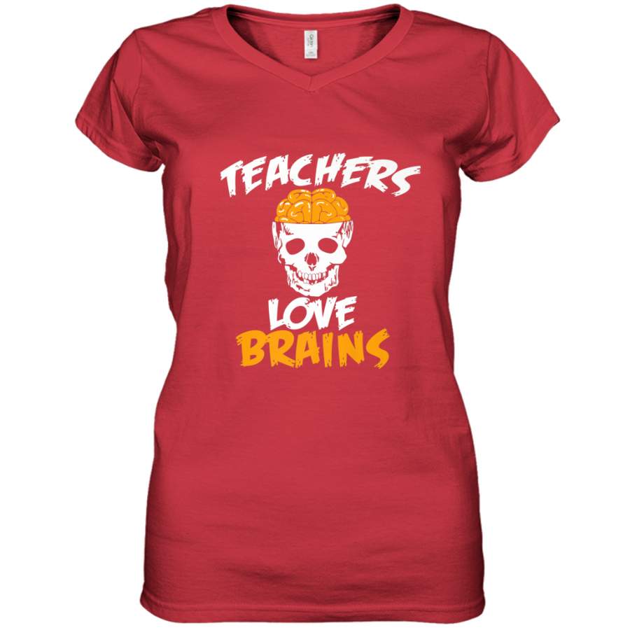 Teachers Love Brains funny Halloween Zombie Women’s V-Neck T-Shirt